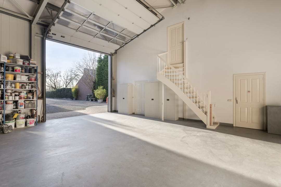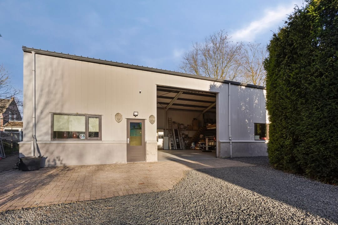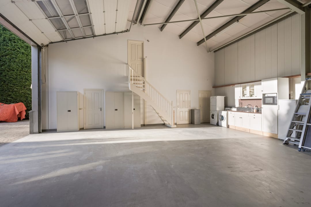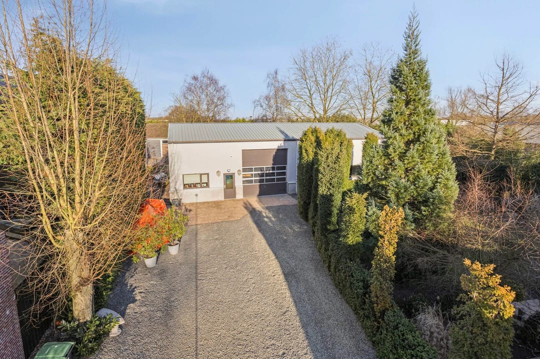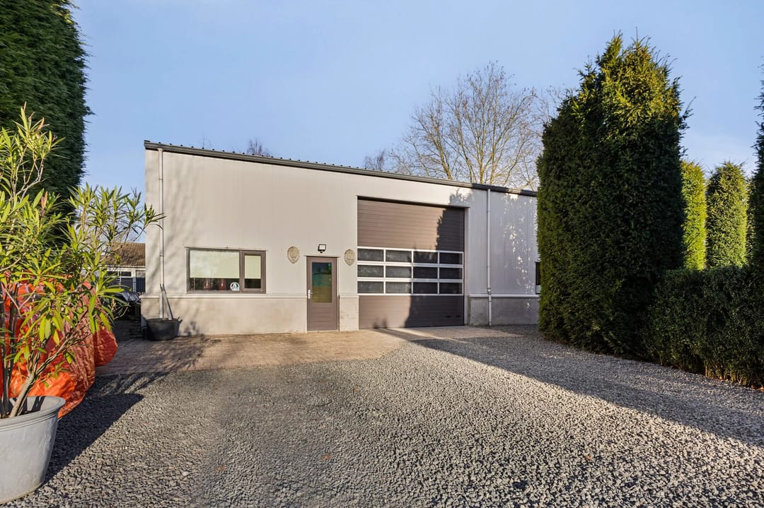 Het multifunctioneel bedrijfsgebouw is bereikbaar via de automatische toegangspoorten links van de woning en beschikt over een eigen huisnummer. Toegang is mogelijk via een loopdeur of een royale sectionaaldeur (4 meter breed en hoog).