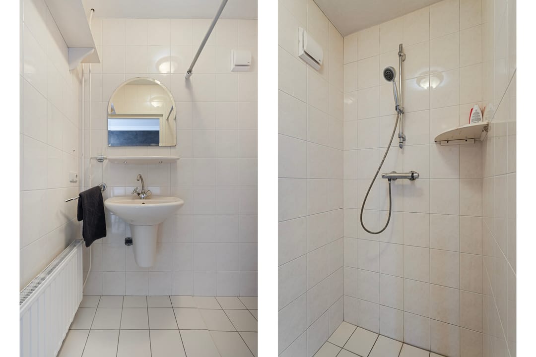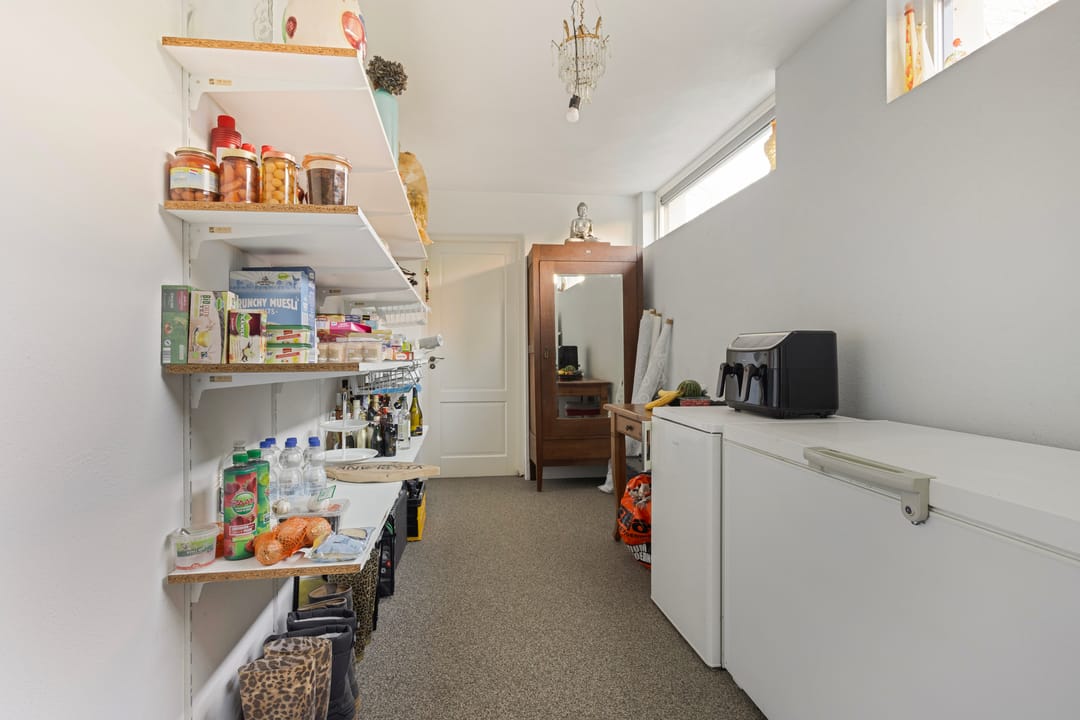 Achter de loopdeur bevindt zich een hal met meterkast, toegang tot een kantoorruimte, een kantine/woonruimte met aangrenzende keuken (voorzien van vaatwasser en gasaansluiting) en een badkamer. Via de trap in de hal bereikt u de eerste verdieping met slaapkamer en berging, waar zich tevens een eigen cv-opstelling (Nefit, 1999) bevindt. Het toilet is bereikbaar vanuit de hal.