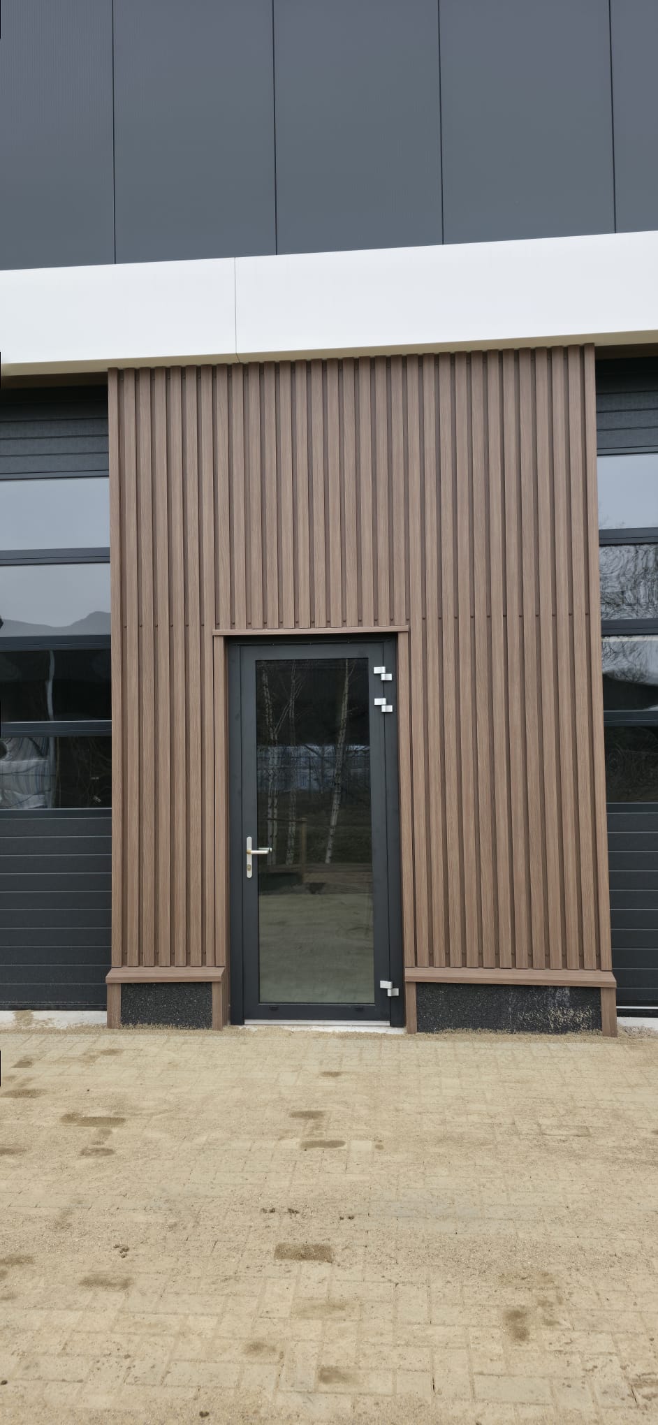 - Betonklinker bestrating rondom het gebouw;