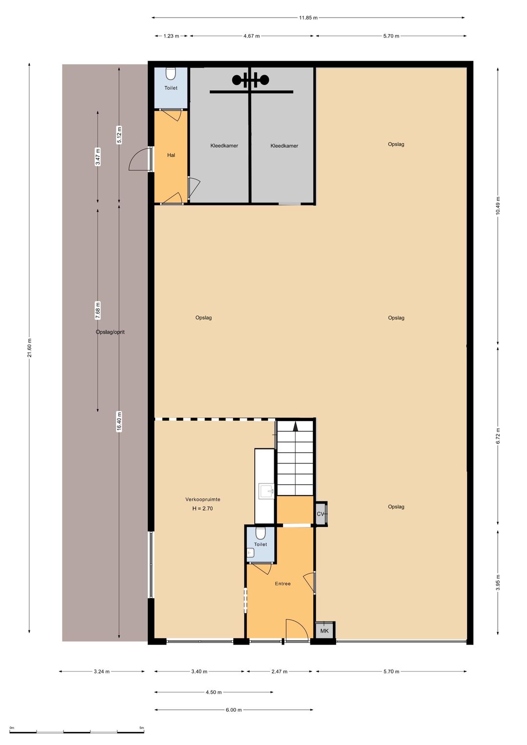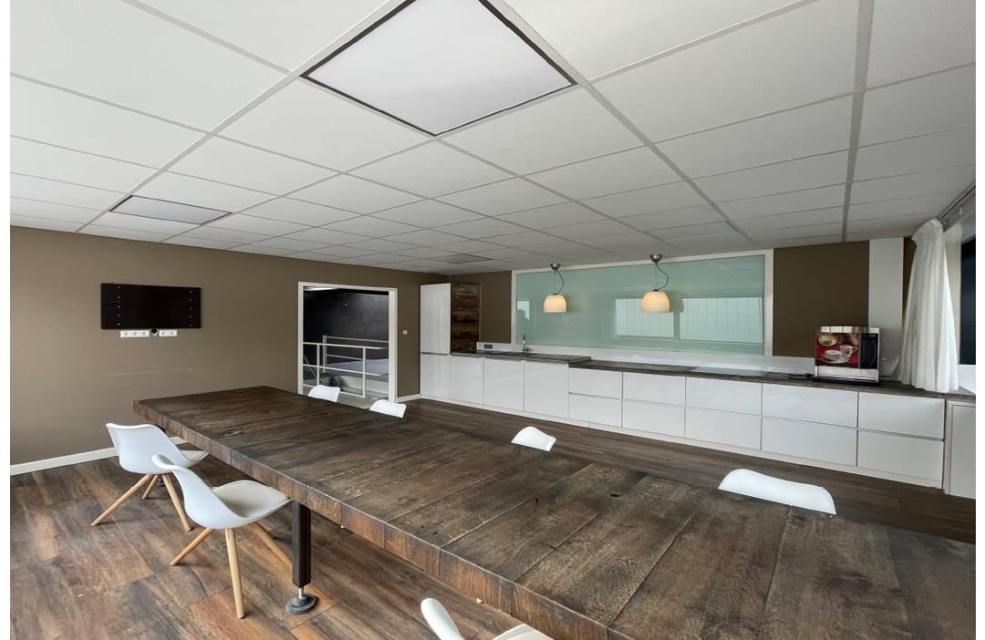 - Airconditioning, overheaddeuren, betonvloer, heater, toilet, pantry, inbouwarmaturen en te openen ramen