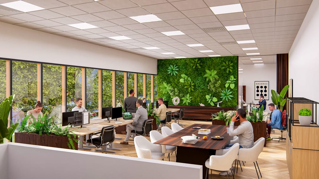 - Wanden voorzien van gesausd glasweefsel aan de binnenzijde van het kantoor;