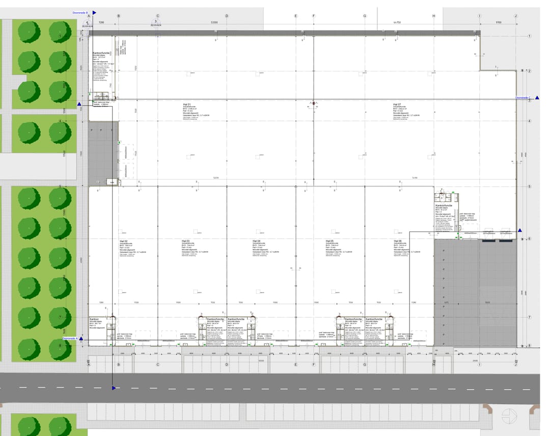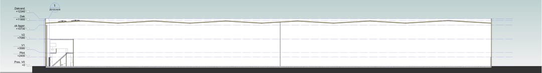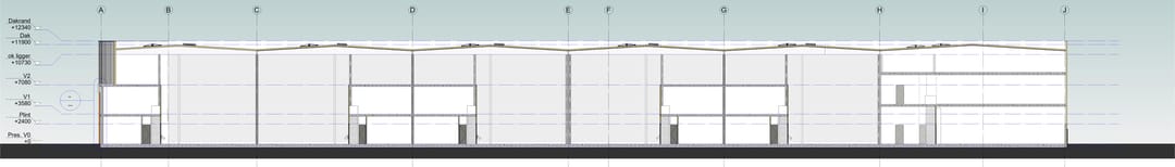 - Gevels volledig geïsoleerd bestaande uit betonnen borstweringselementen en stalen sandwichwanden Rc 4,7 m² K/W;