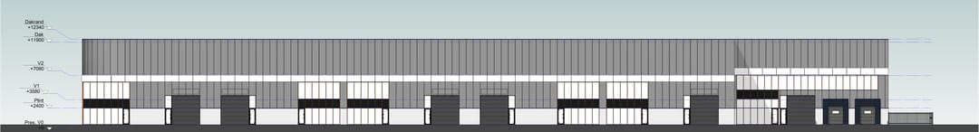 - Gevels volledig geïsoleerd bestaande uit betonnen borstweringselementen en stalen sandwichwanden Rc 4,7 m² K/W;