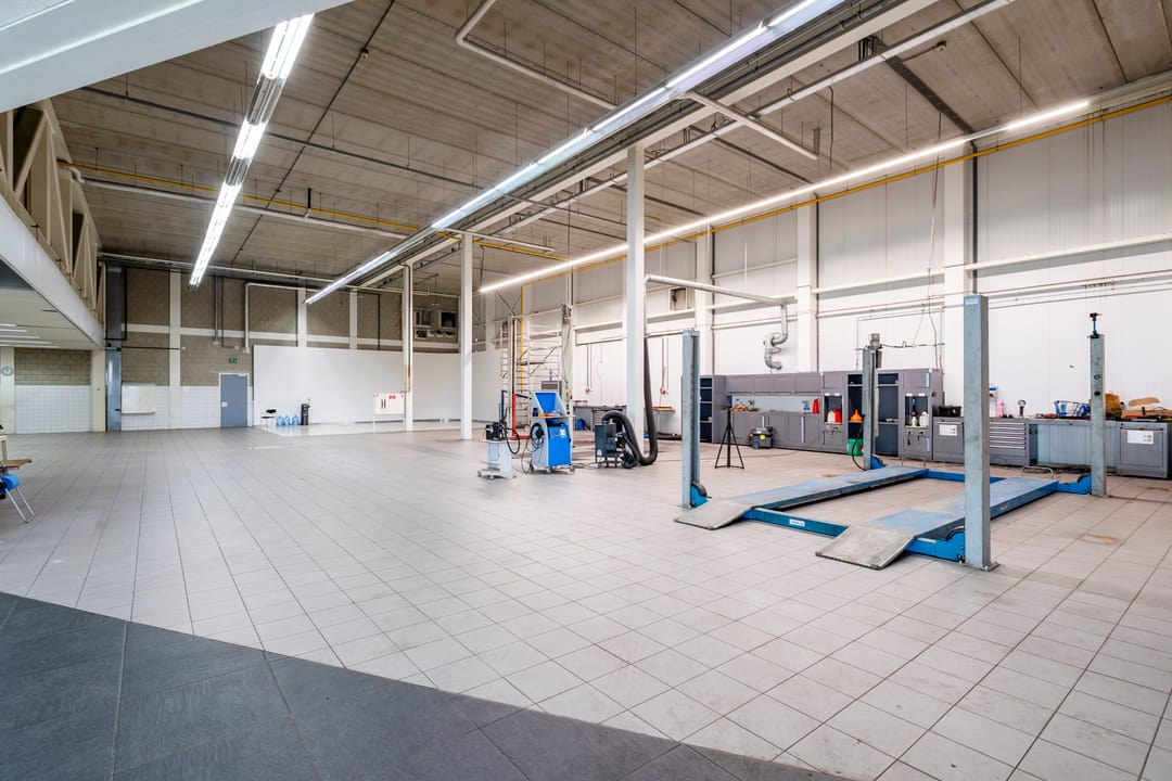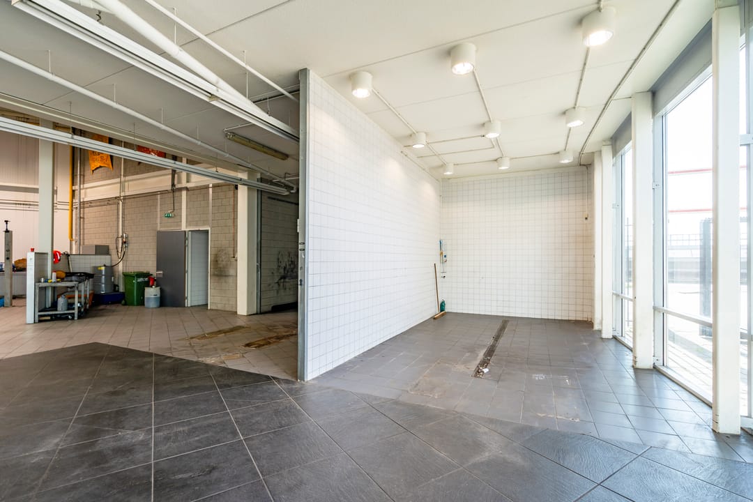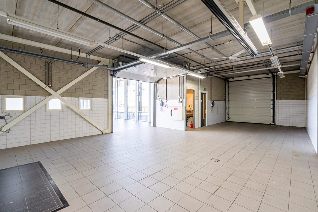 - Overheaddeuren, betonvloer, heater en toilet