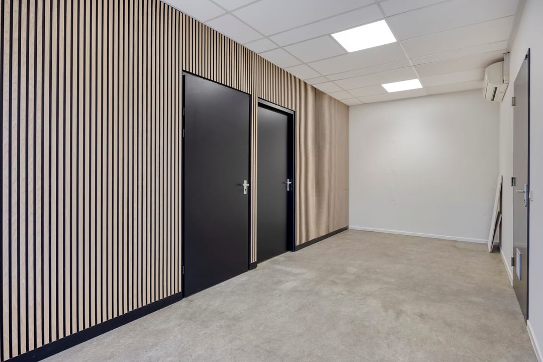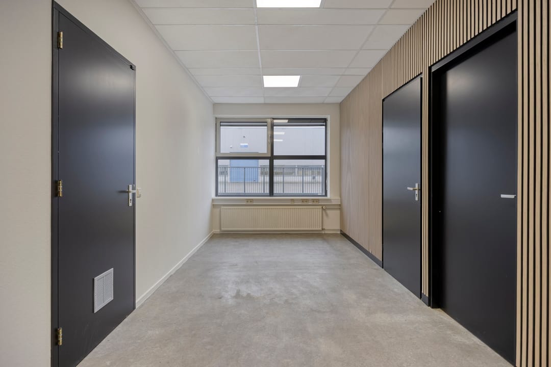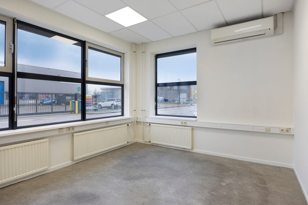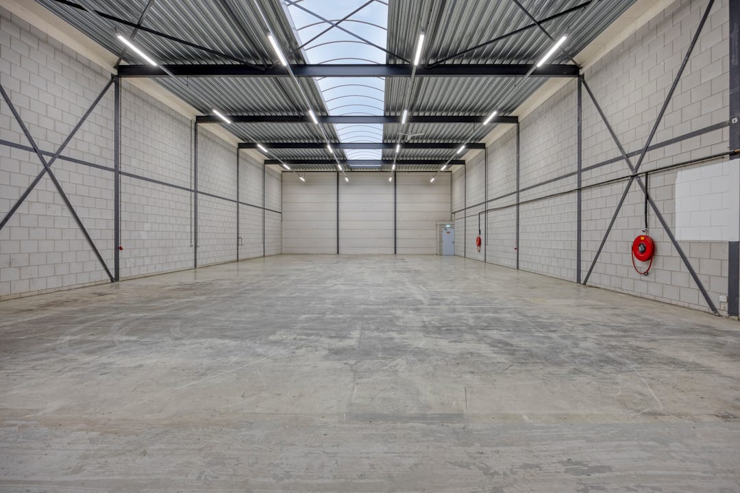 - Lichtstraten, overheaddeuren, krachtstroom, betonvloer, heater, toilet, pantry, airconditioning, inbouwarmaturen en te openen ramen