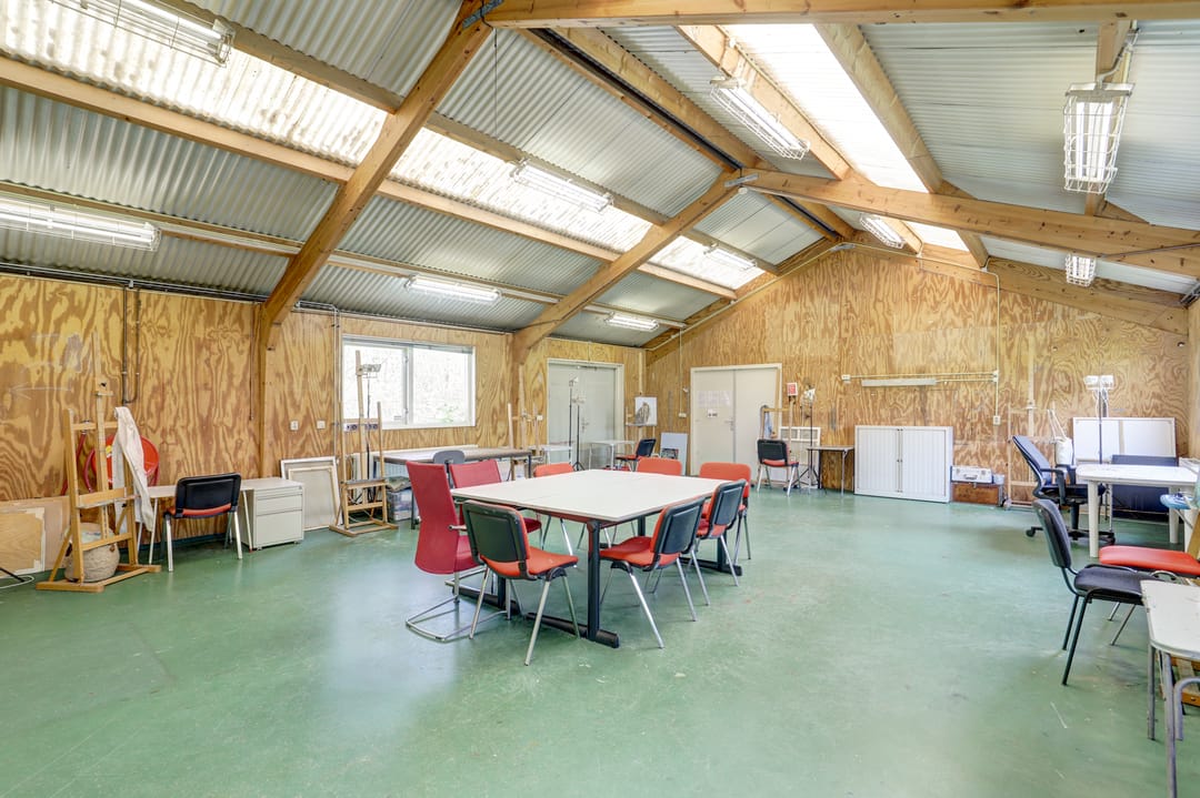 De totale vloeroppervlakte van de loods bedraagt circa 230 m² (begane grond) gelegen op 1.255 m² eigen grond.