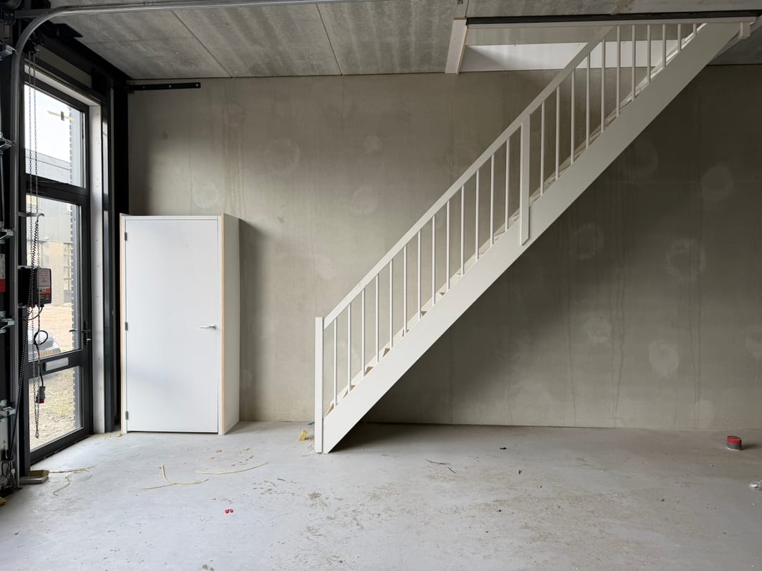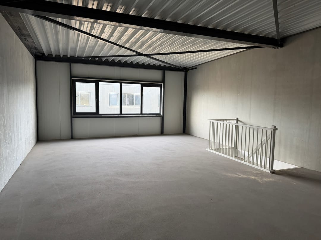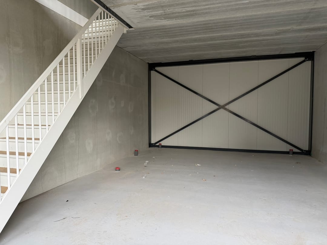 - Overheaddeuren, betonvloer en te openen ramen