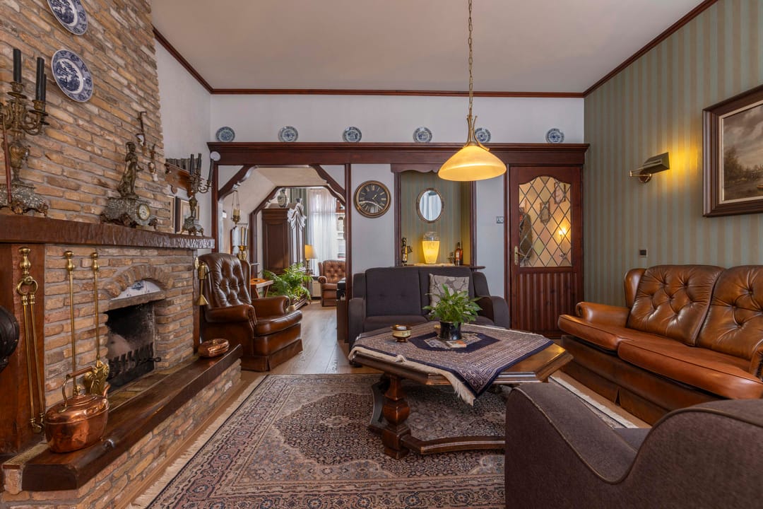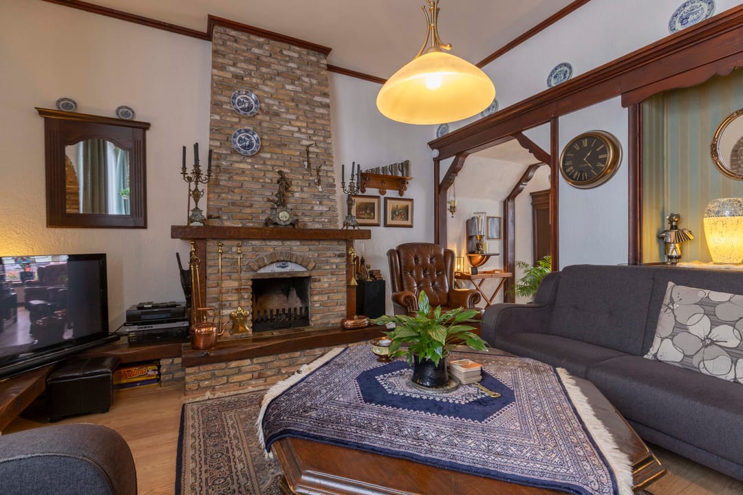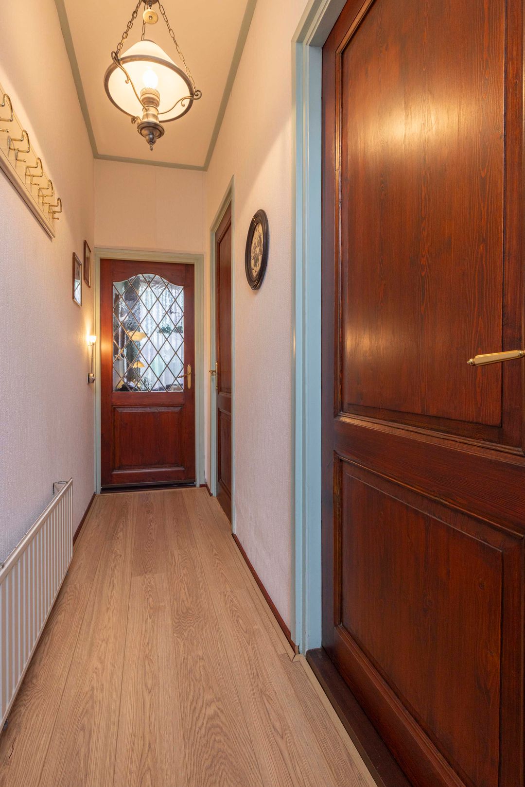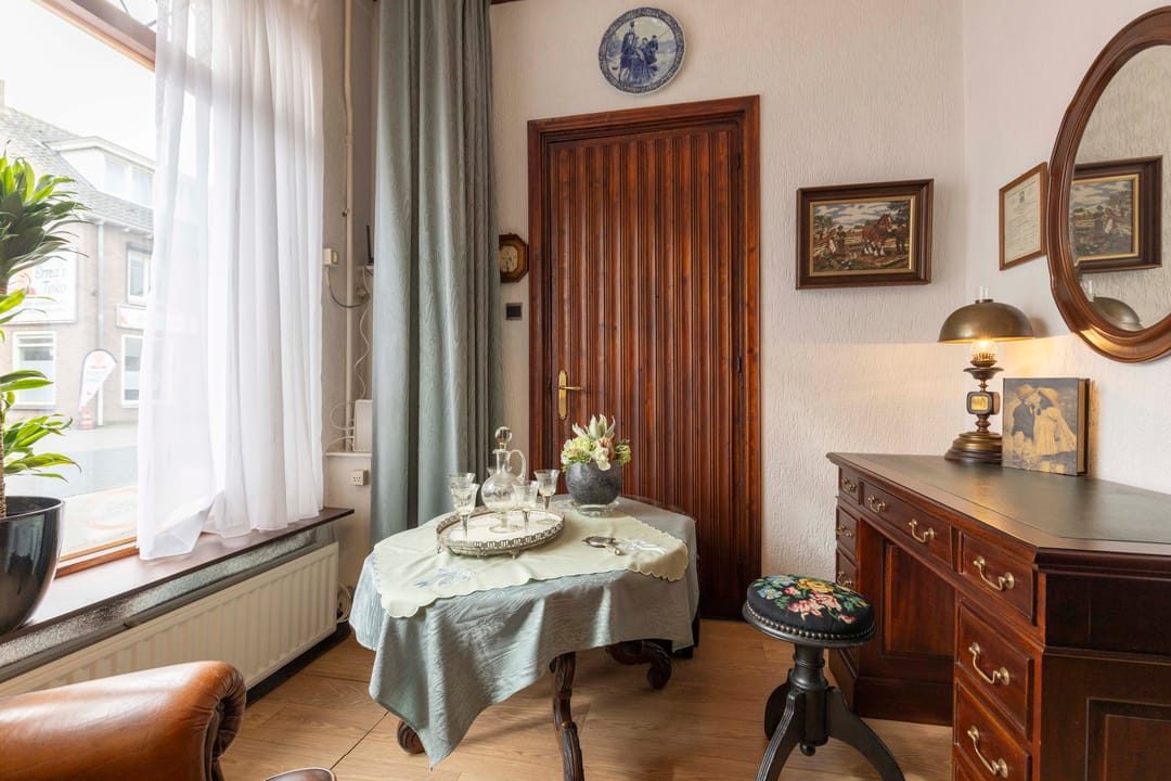 Entree naar hal met trapopgang. Vanuit de hal toegang tot de sfeervolle woonkamer. In de woonkamer een robuuste schouw met open haard. Vanuit de woonkamer een doorloop naar de keuken. In de keuken een klassieke inbouwkeuken onder meer voorzien van de volgende inbouw-apparatuur: 4-pits gaskookplaat, afzuigkap, koelkast en vaatwasmachine. Aansluitend aan de keuken een portaal met toilet, een loopdeur naar buiten. Het portaal biedt tevens toegang tot de badkamer. De badkamer met ligbad, douchecabine en wastafel. Verder in de badkamer de opstelling van de cv-ketel en de aansluitingen voor de wasmachine.