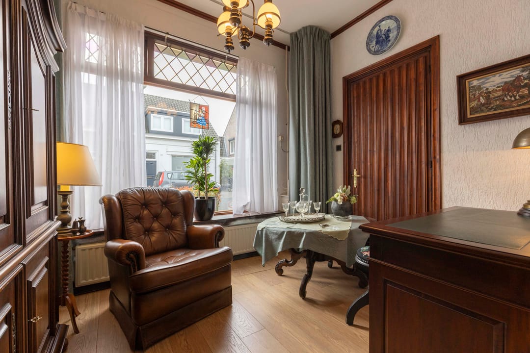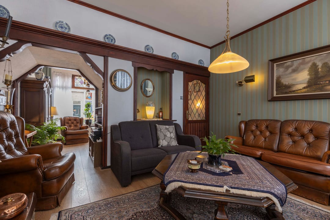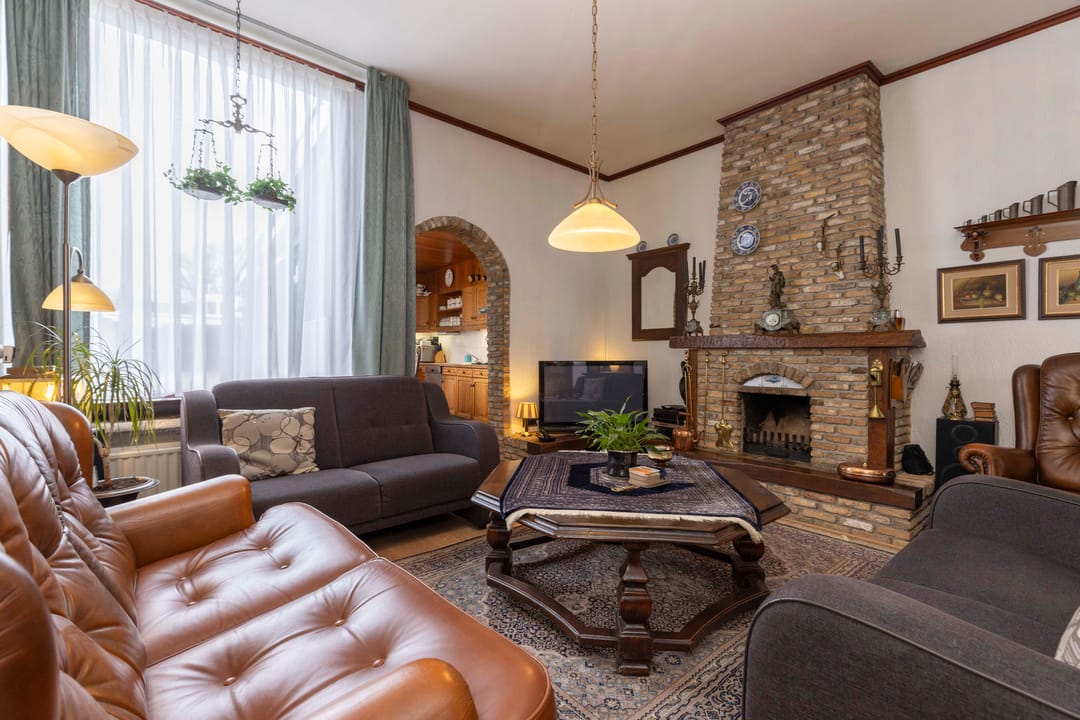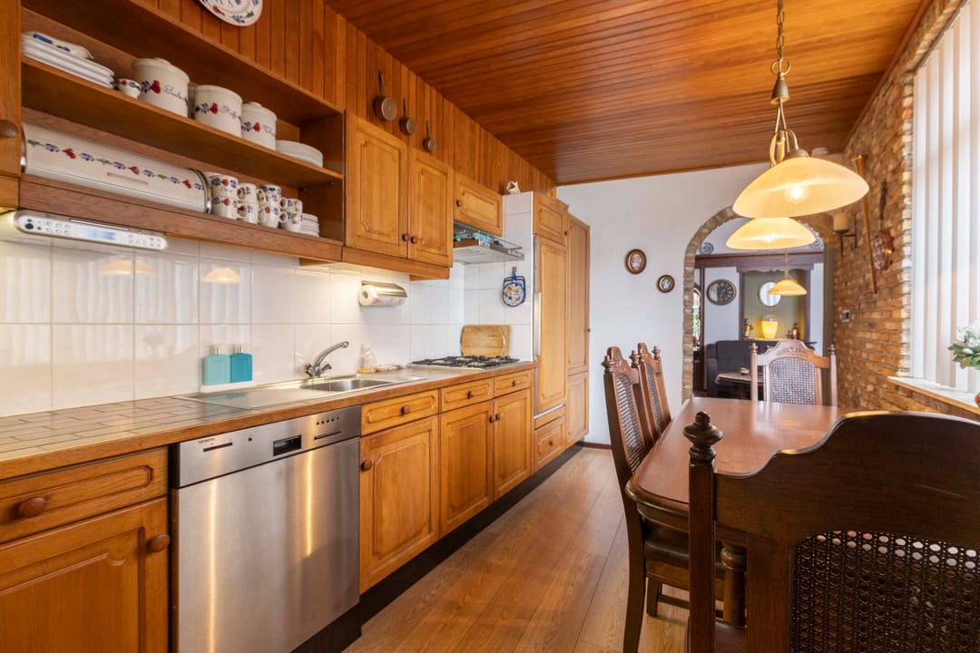 Entree naar hal met trapopgang. Vanuit de hal toegang tot de sfeervolle woonkamer. In de woonkamer een robuuste schouw met open haard. Vanuit de woonkamer een doorloop naar de keuken. In de keuken een klassieke inbouwkeuken onder meer voorzien van de volgende inbouw-apparatuur: 4-pits gaskookplaat, afzuigkap, koelkast en vaatwasmachine. Aansluitend aan de keuken een portaal met toilet, een loopdeur naar buiten. Het portaal biedt tevens toegang tot de badkamer. De badkamer met ligbad, douchecabine en wastafel. Verder in de badkamer de opstelling van de cv-ketel en de aansluitingen voor de wasmachine.