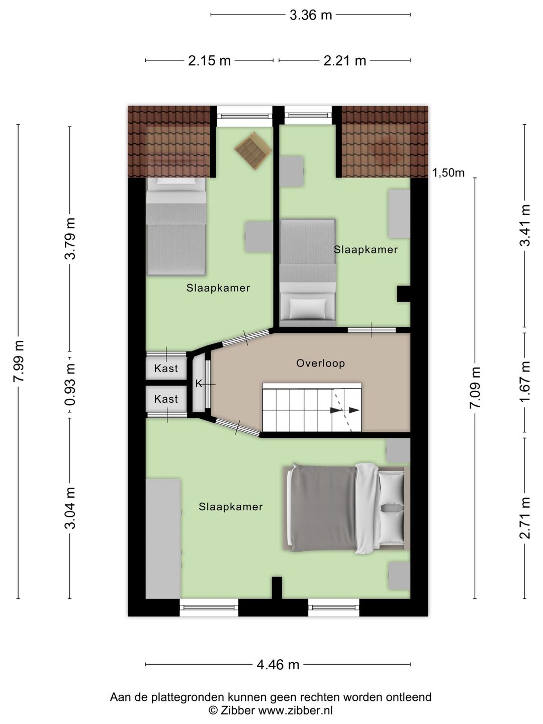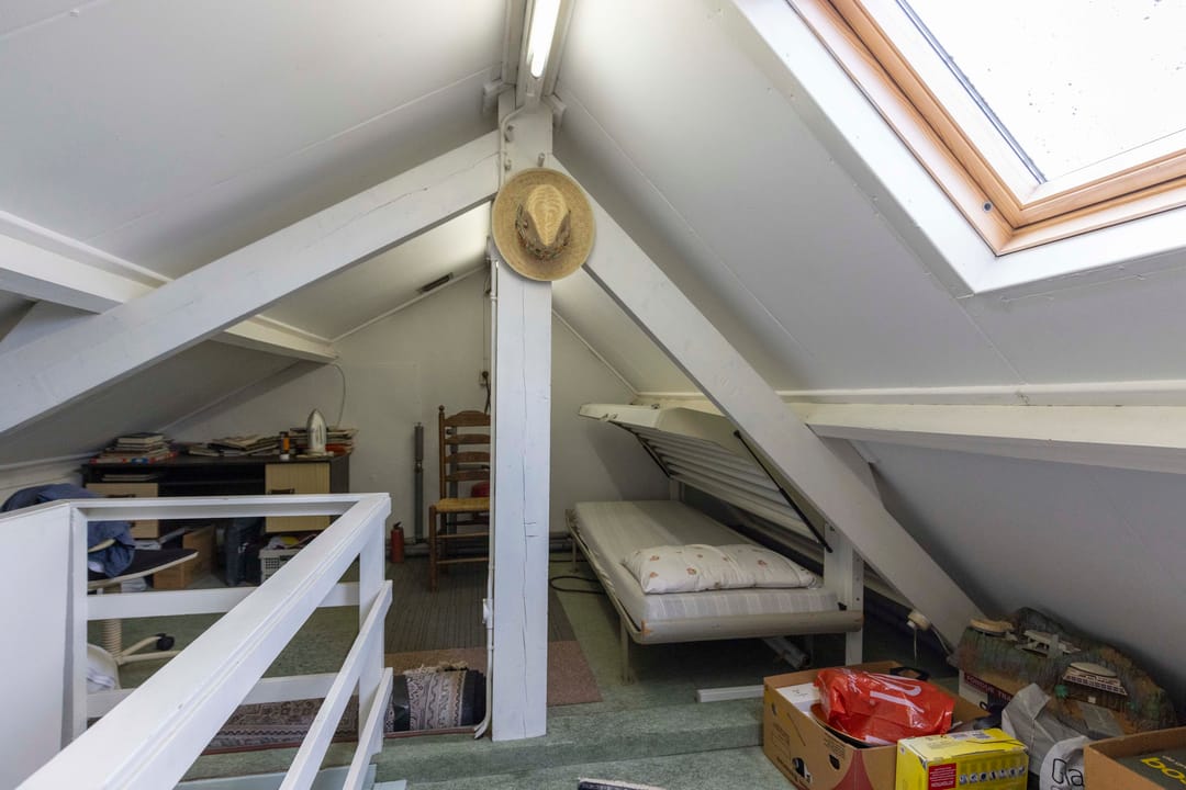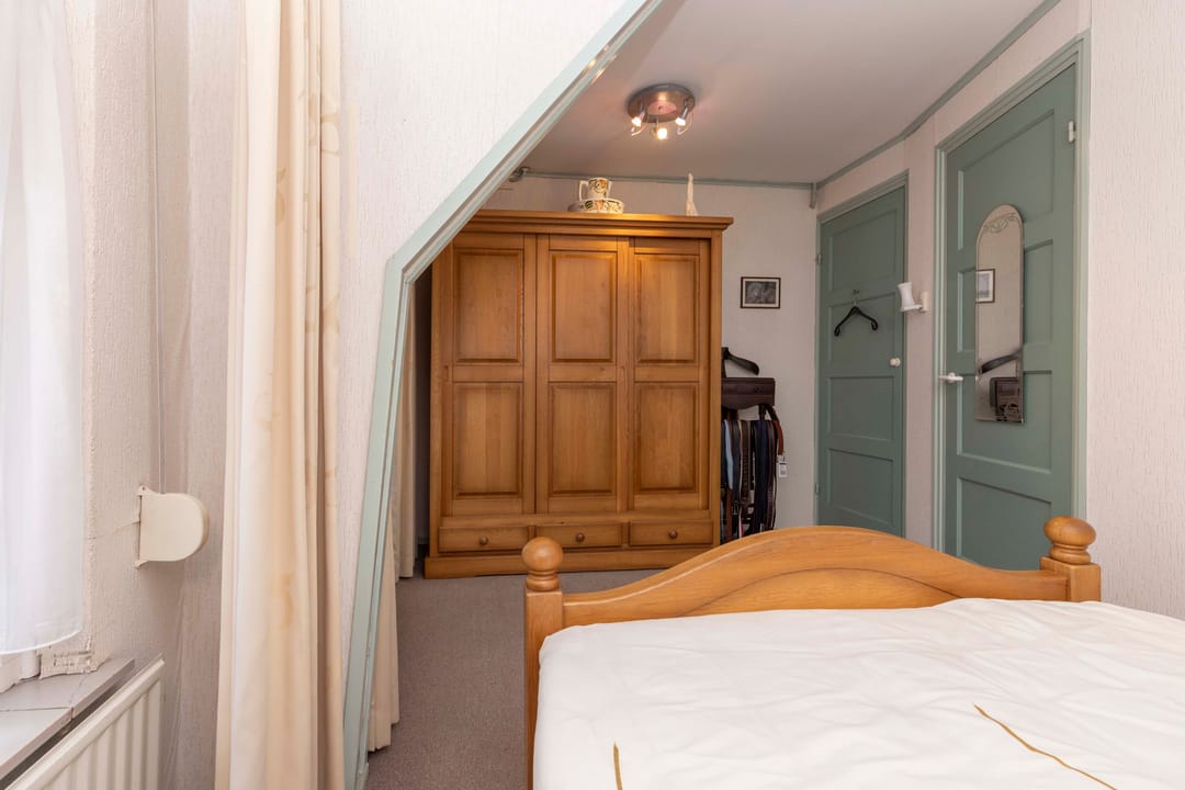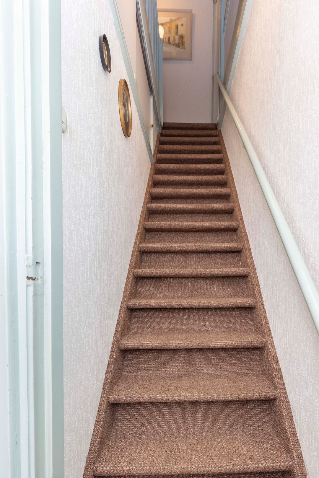 Overloop naar drie slaapkamers. Verder op de overloop een vaste kast. De kozijnen zijn voorzien van rolluiken. Op de slaapkamers en de overloop ligt vloerbedekking.
