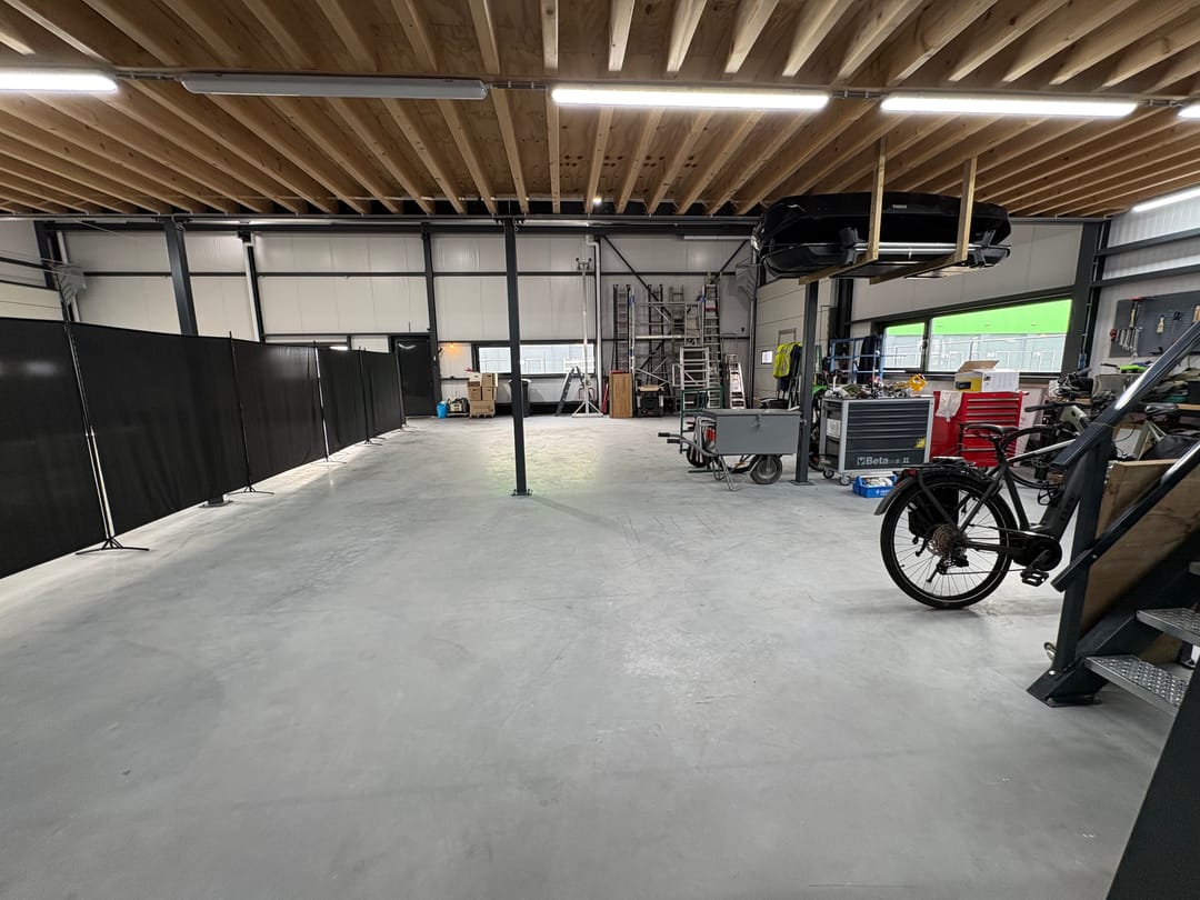 - Overheaddeuren, betonvloer, toilet, pantry en te openen ramen