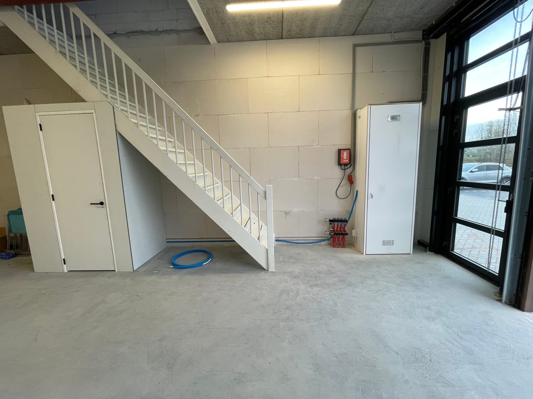 - Overheaddeuren, krachtstroom, betonvloer, toilet en te openen ramen