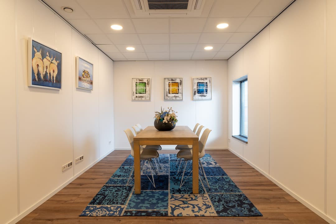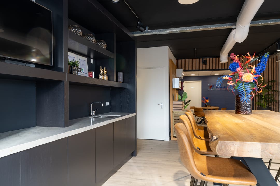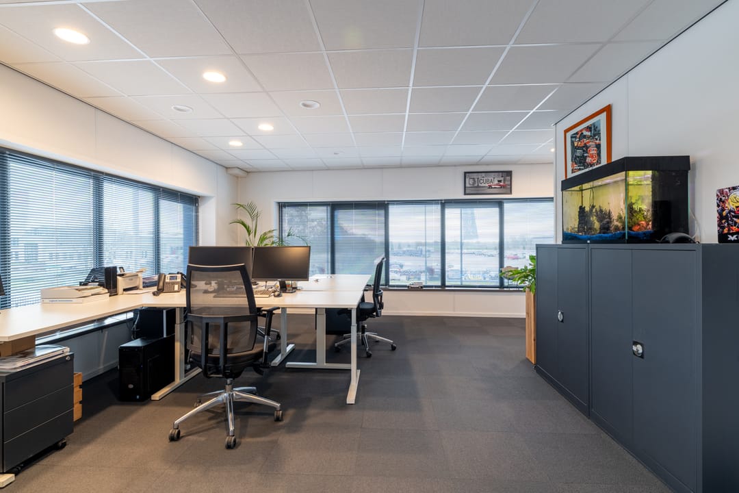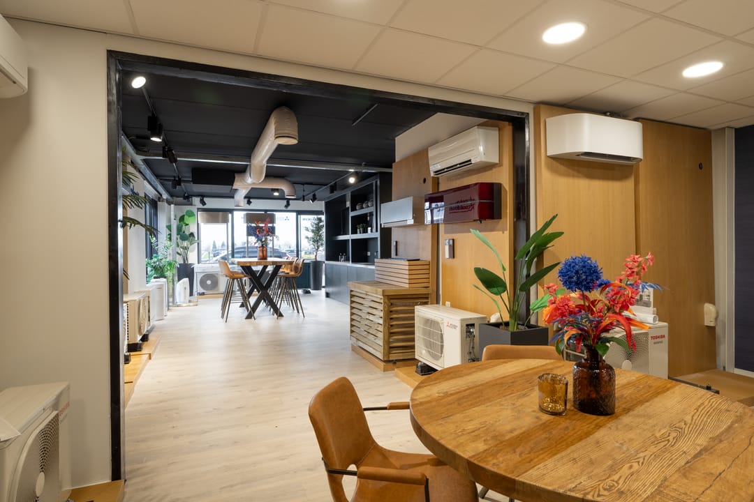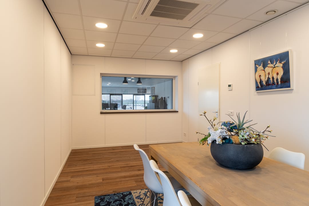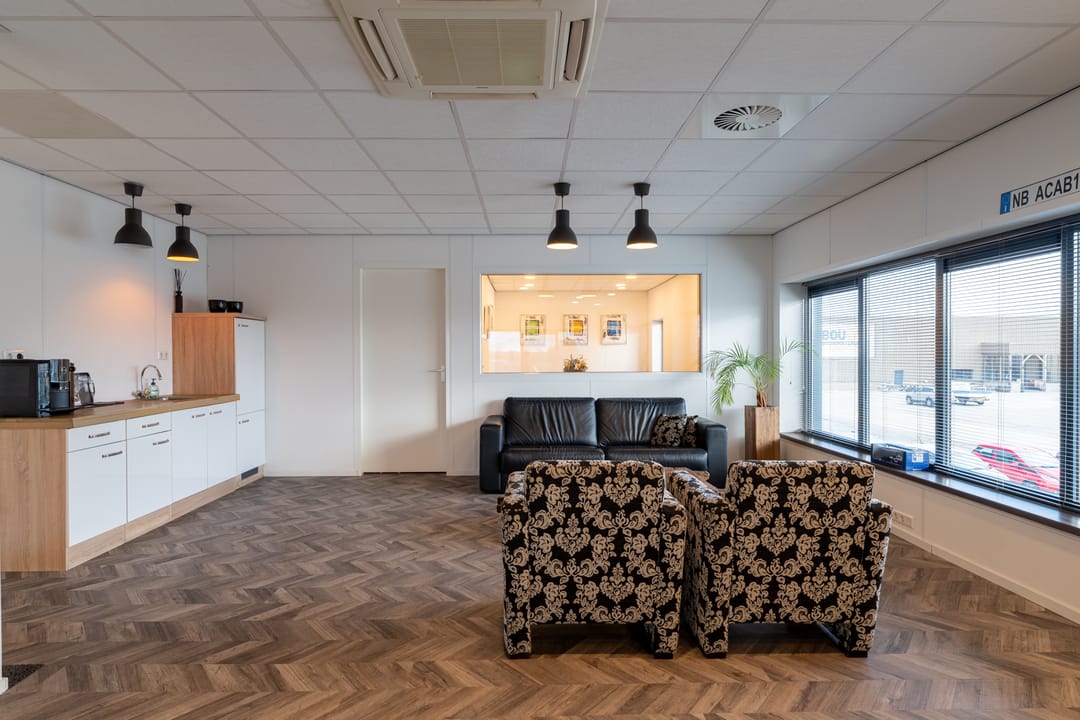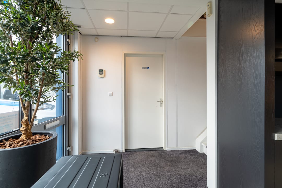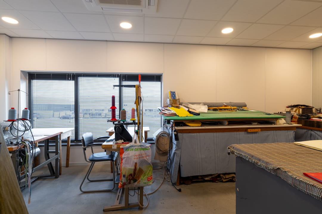Het tweelaags kantoor/showroom aan de voorzijde heeft een representatieve uitstraling en beschikt over ruime raampartijen die zorgen voor veel natuurlijke lichtinval en een prettige werkomgeving. Daarnaast is het kantoor voorzien van een pantry en airconditioning, wat bijdraagt aan het comfort voor zowel personeel als bezoekers.