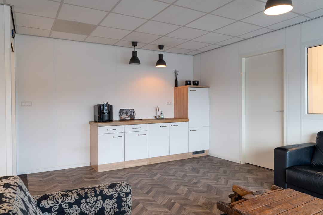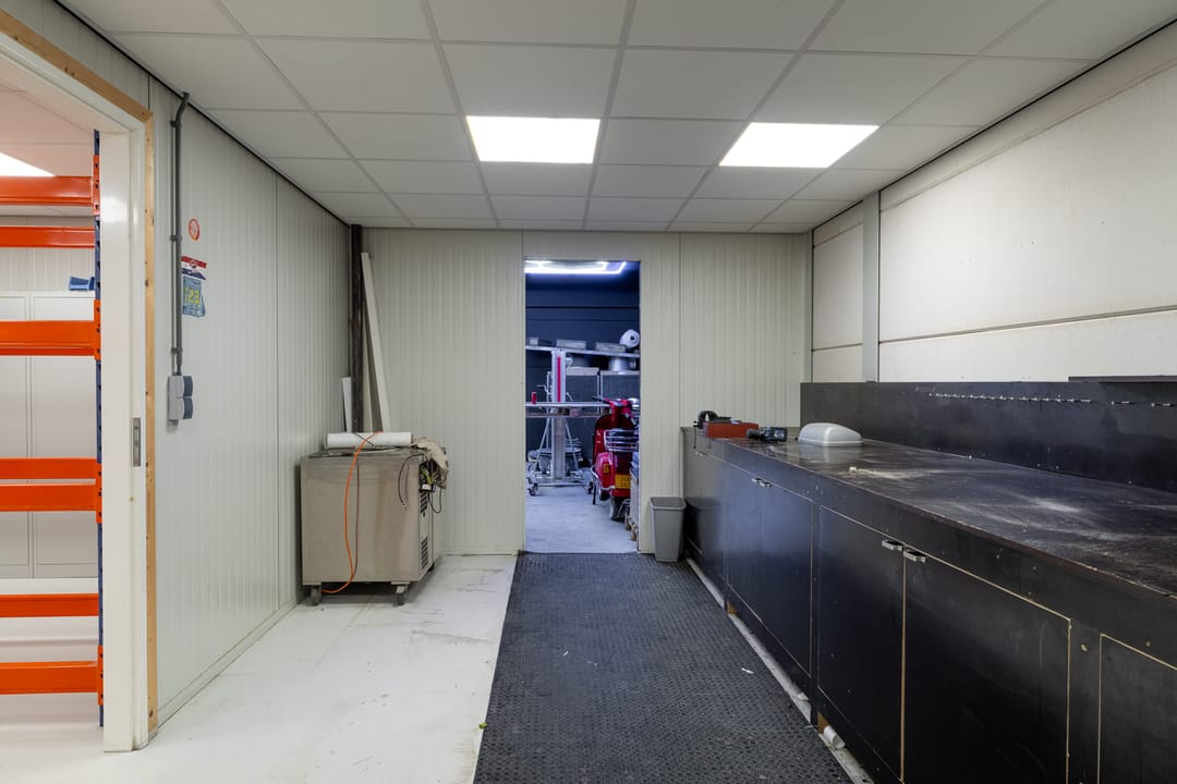 - Overheaddeuren, krachtstroom, betonvloer, toilet, pantry, airconditioning, mechanische ventilatie, inbouwarmaturen en te openen ramen