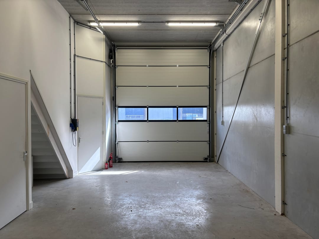- Overheaddeuren, betonvloer, toilet, pantry en te openen ramen