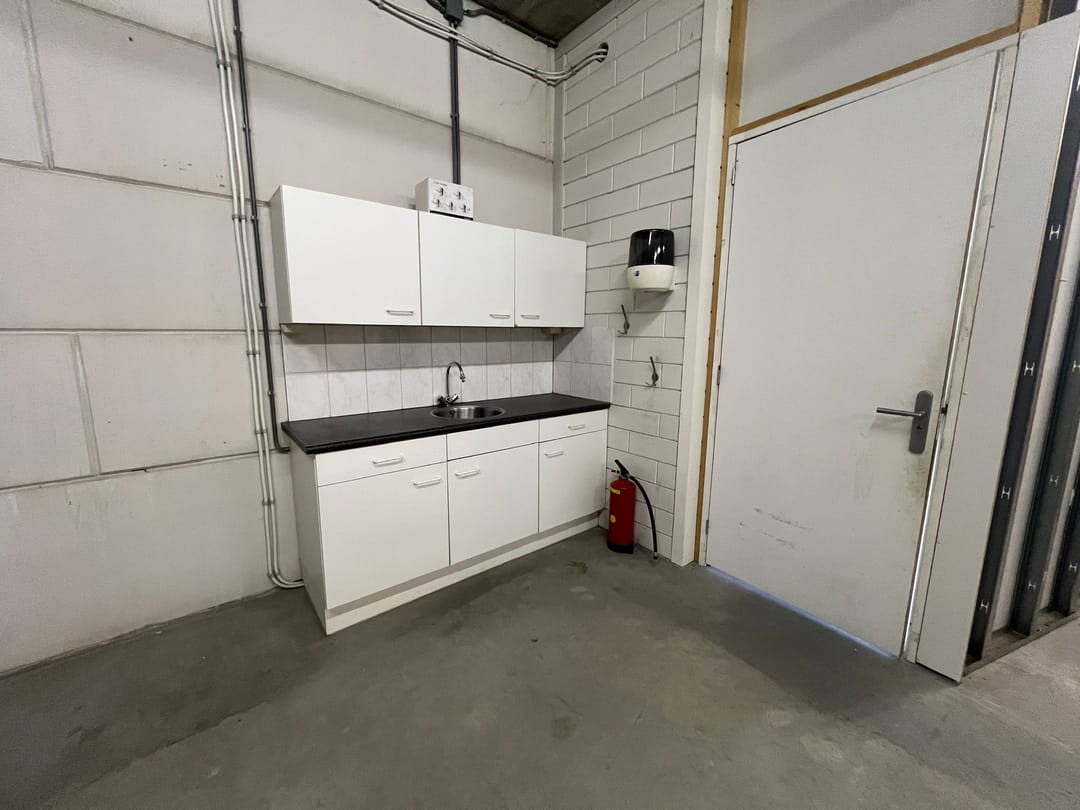 - Overheaddeuren, krachtstroom, betonvloer en pantry