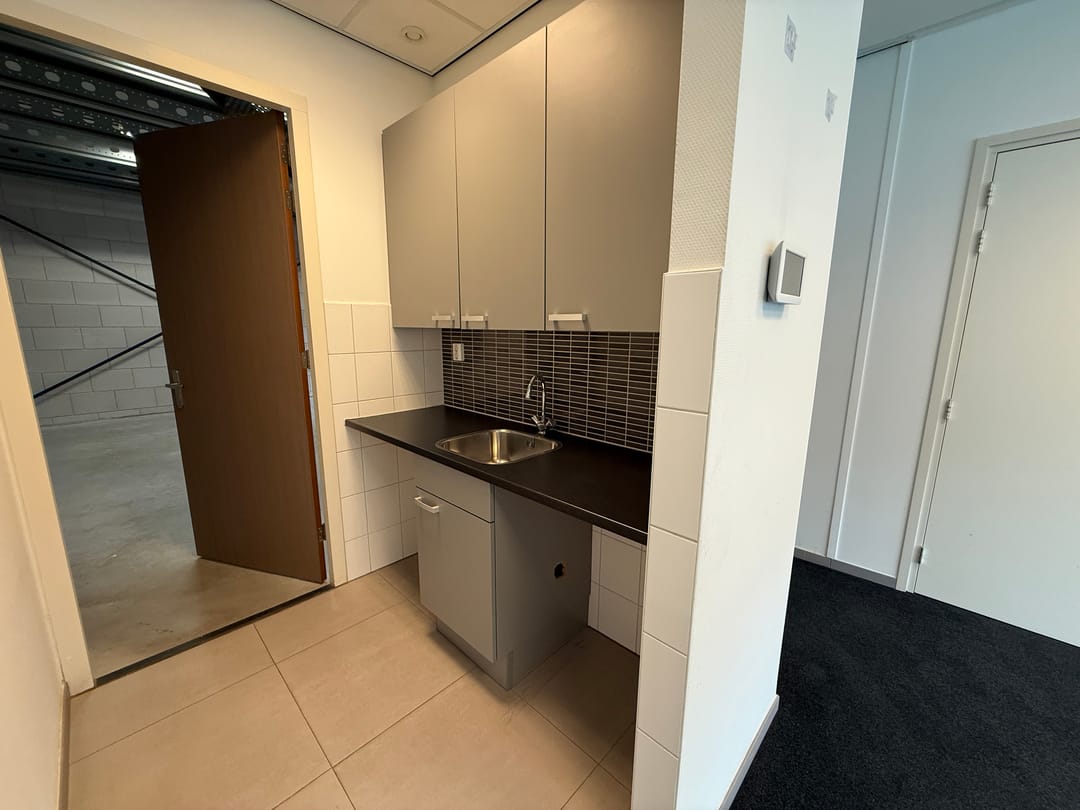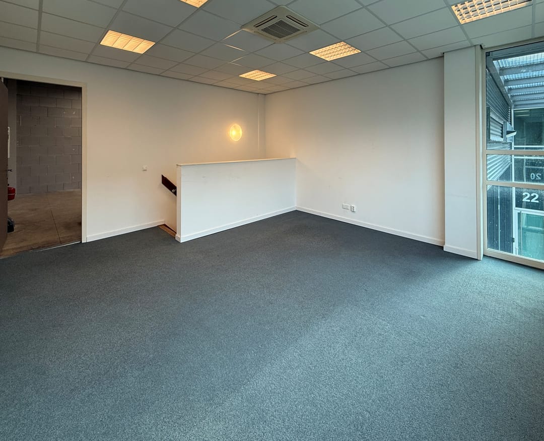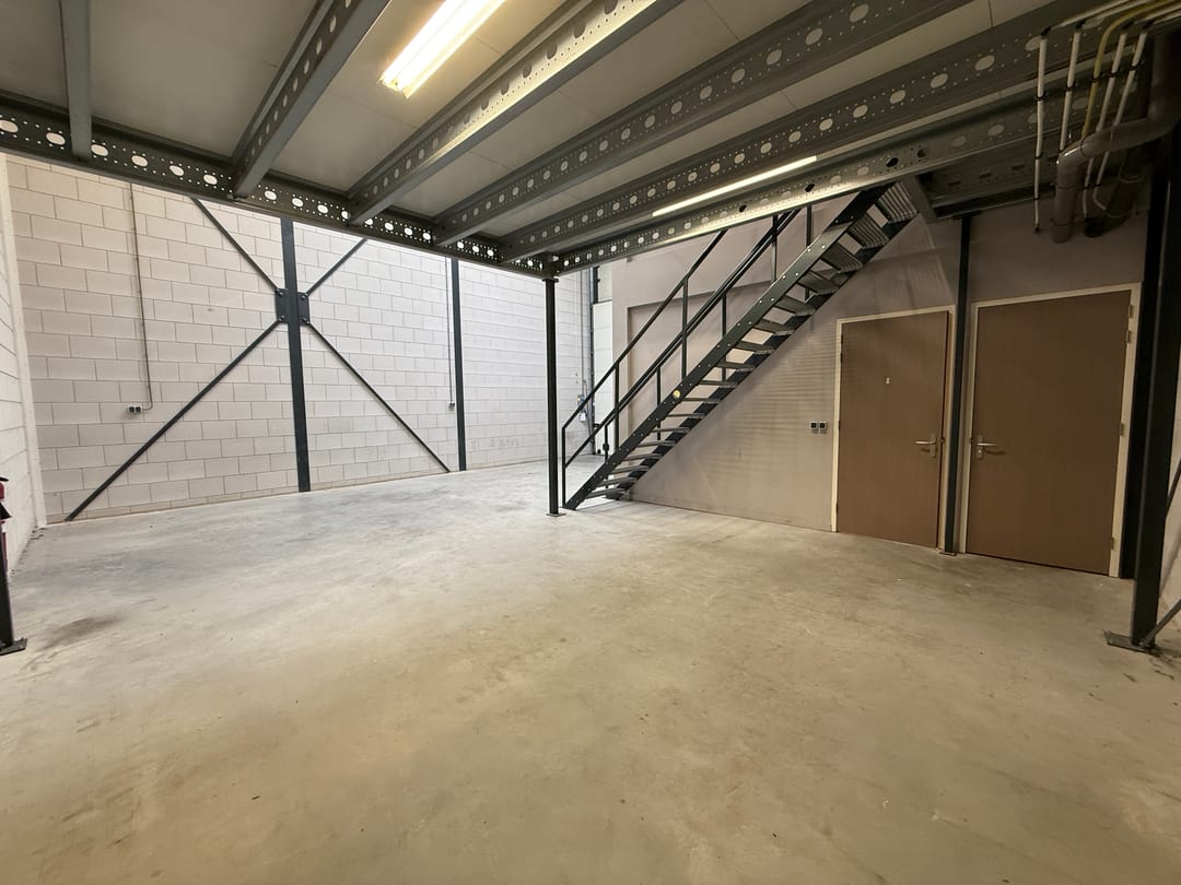 De bedrijfs-/kantoorruimte bestaat uit een compleet kantoor in twee lagen en een bedrijfsruimte met solide entresolvloer. Hoogwaardige materialen en zeer compleet afgewerkt. De kantoorruimte is voorzien van airco.