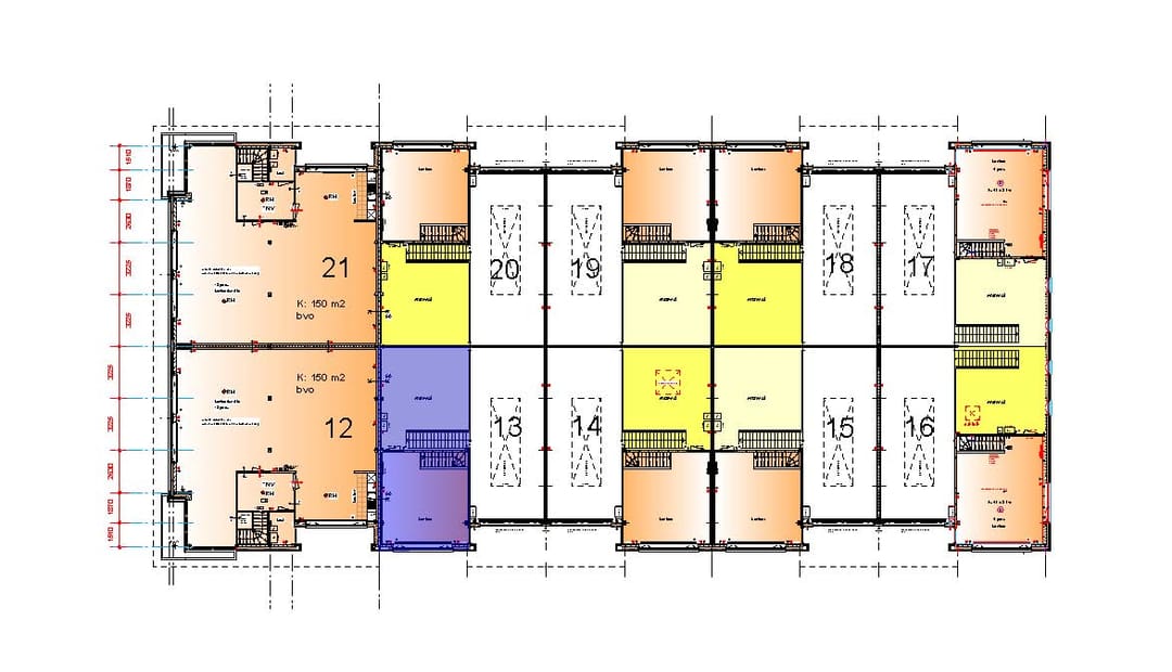- verdiepingsvloeren kantoor uitgevoerd in beton (kanaalplaatvloeren);