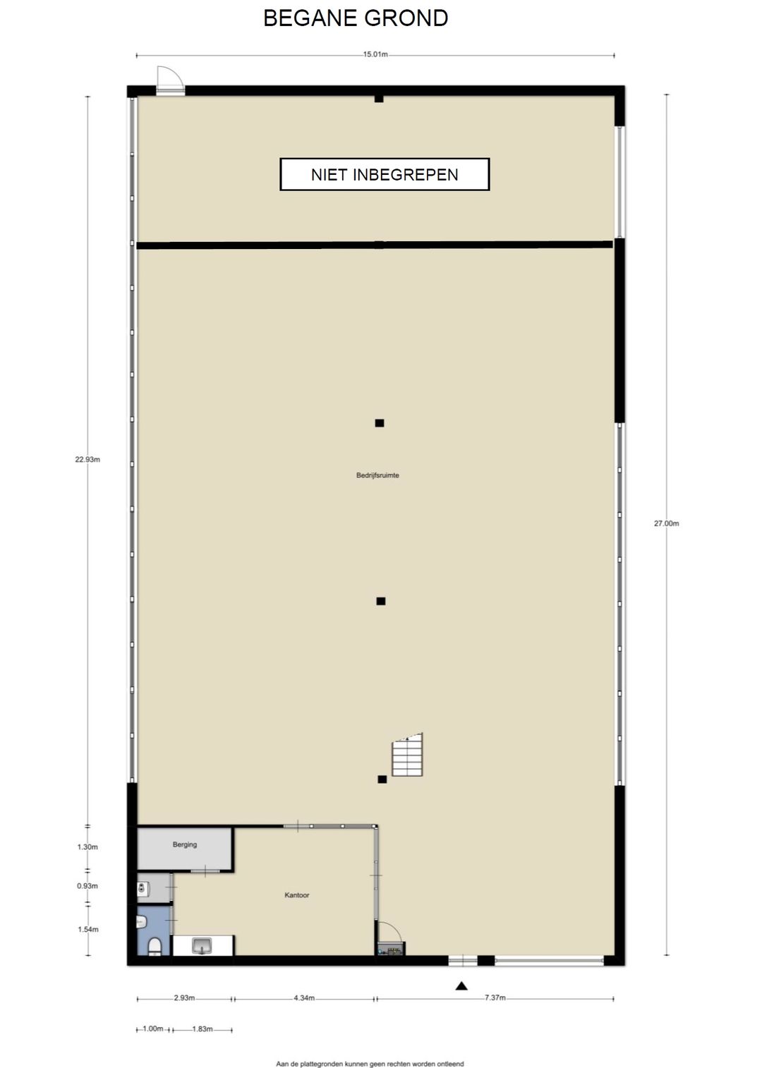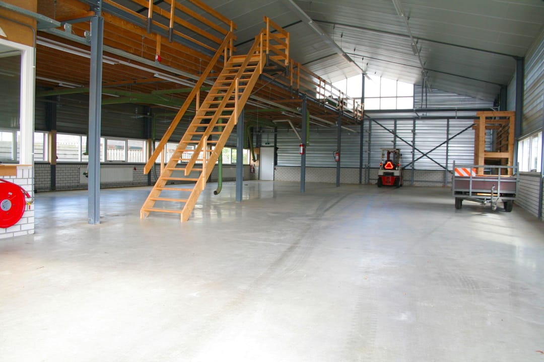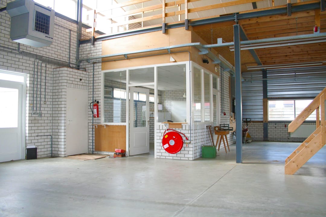 Overheaddeuren, krachtstroom, betonvloer, heater, inbouwarmaturen en te openen ramen