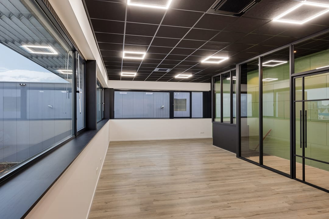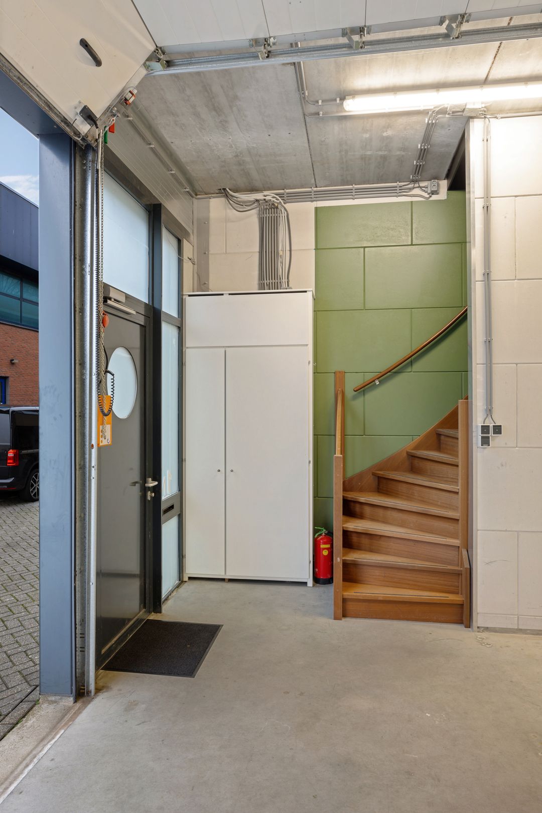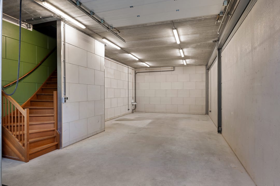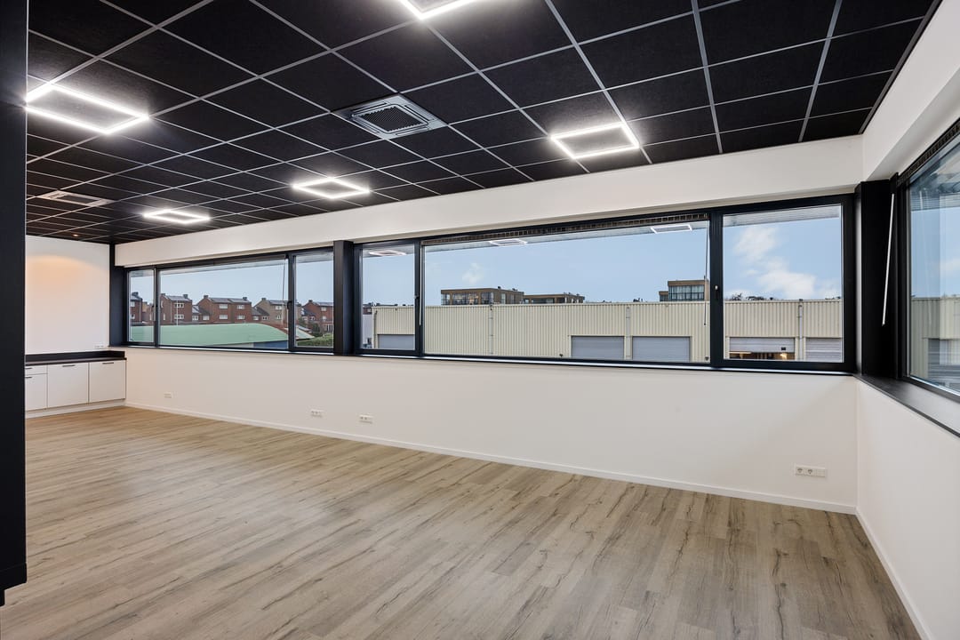 - Airconditioning, overheaddeuren, krachtstroom, betonvloer, toilet, pantry, inbouwarmaturen en te openen ramen