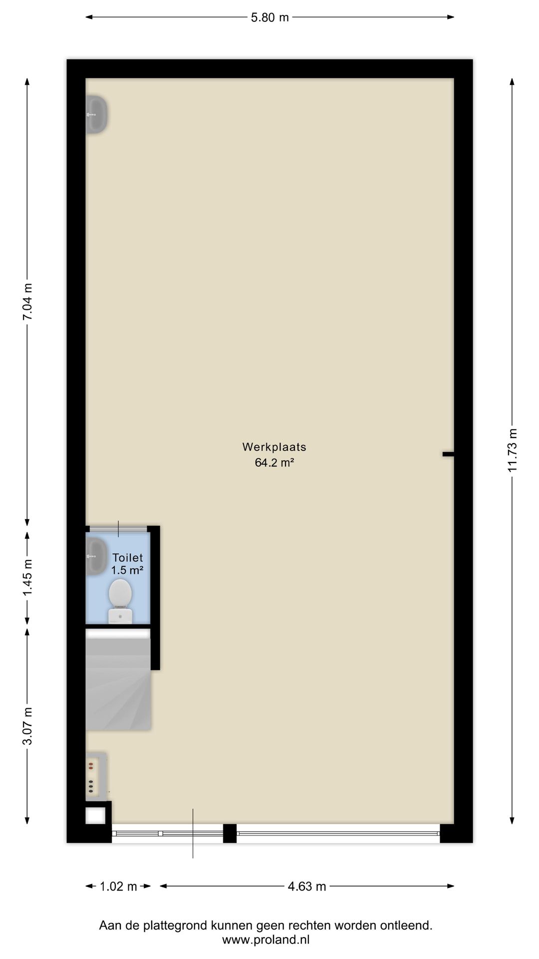- 66,20 m² v.v.o. bedrijfsruimte (begane grond)