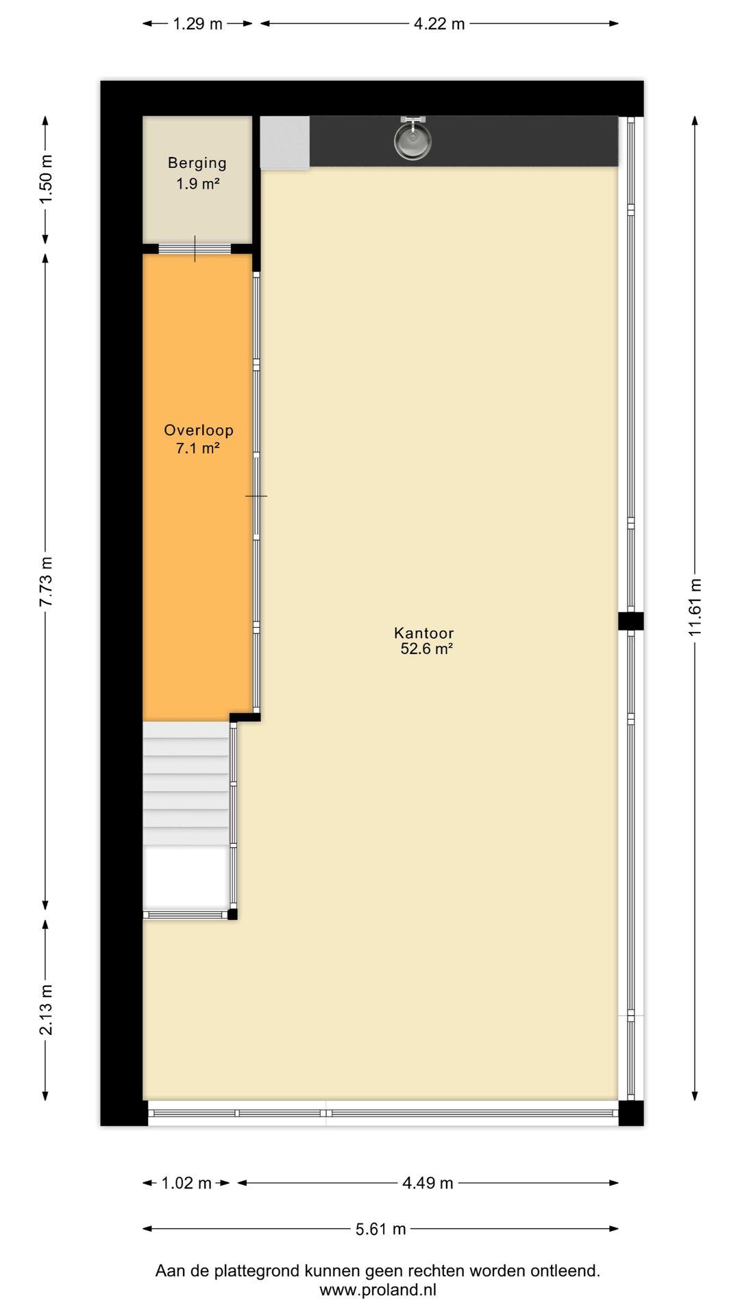 - 61,60 m² v.v.o. kantoorruimte (1e verdieping)