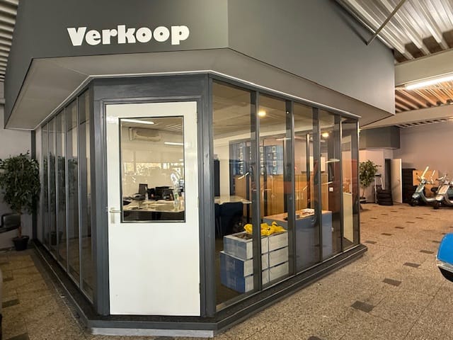 Showroom met kantoor en buitenterrein gelegen aan de voorzijde van het pand