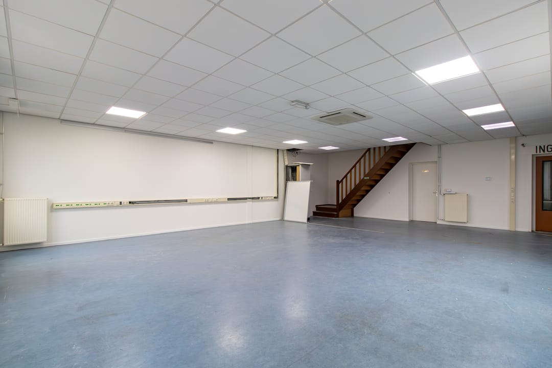 - Overheaddeuren, krachtstroom, betonvloer, heater, toilet, pantry, airconditioning en te openen ramen