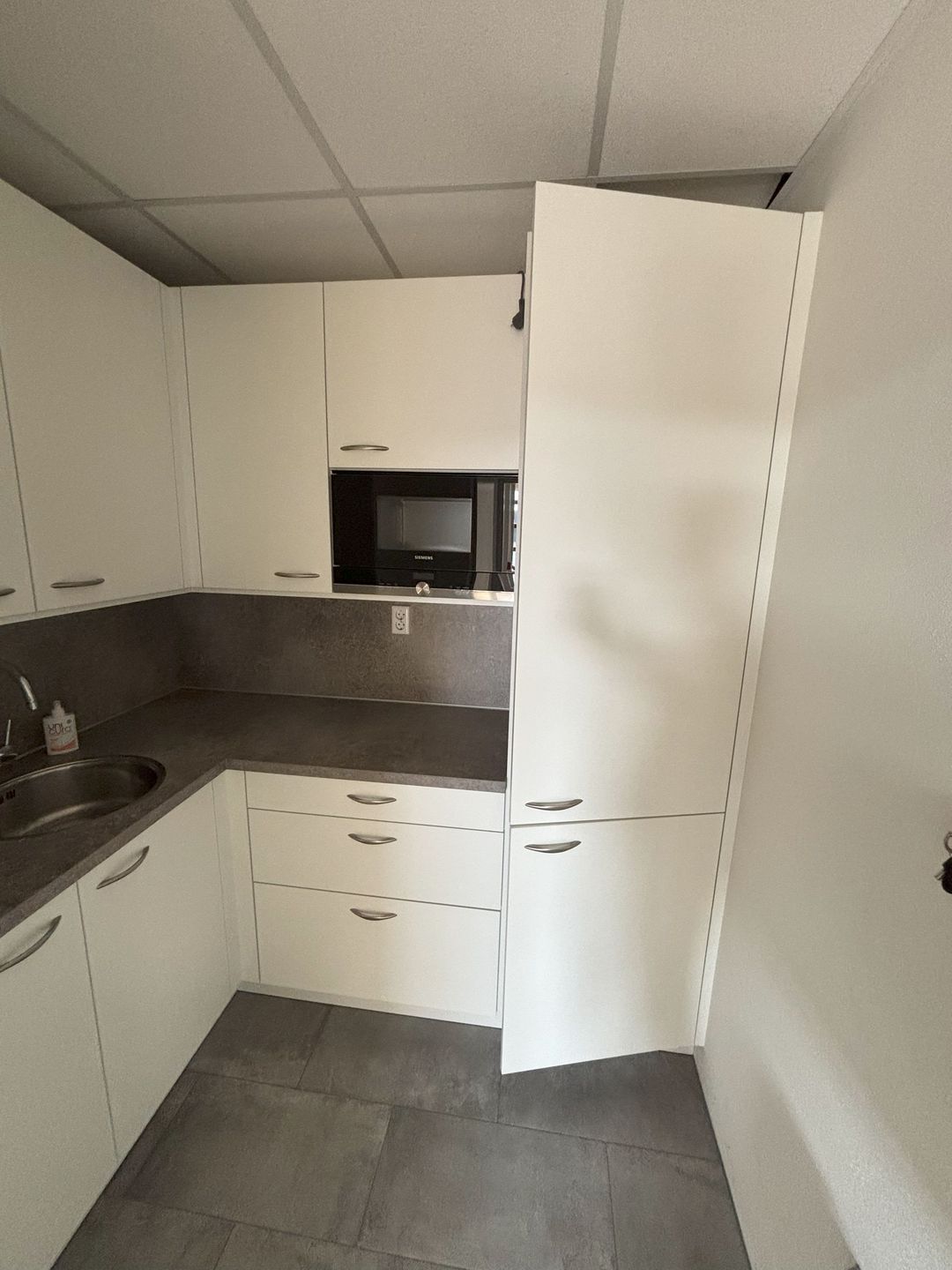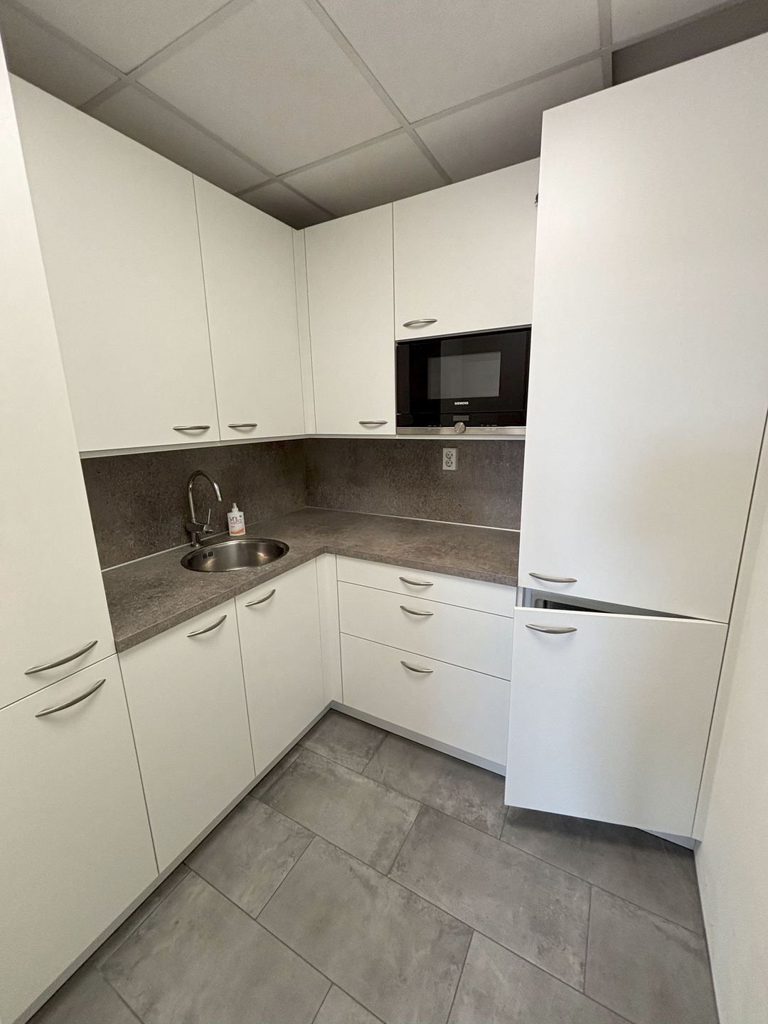 • kantoorruimtes op verdieping zijn afgewerkt met systeemplafond, verlichting en nette wanden;