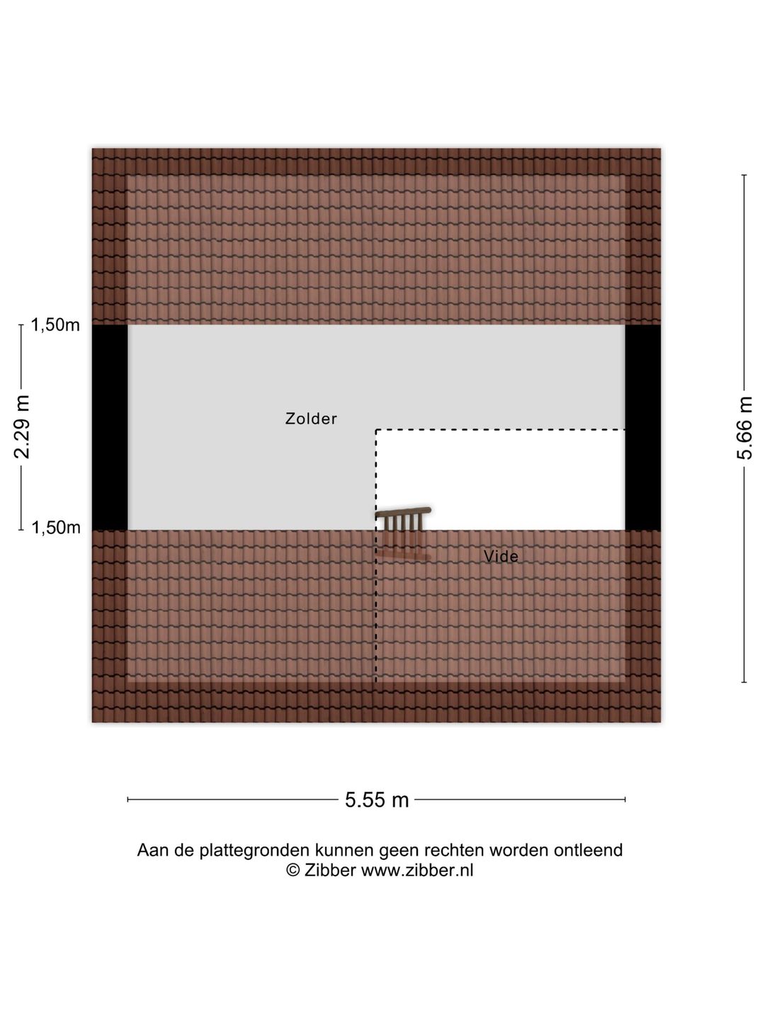 Het dak bestaat uit een houten dakconstructie. Daarnaast is er nog een kleine vide aanwezig, welke bereikbaar is via een losse trap.