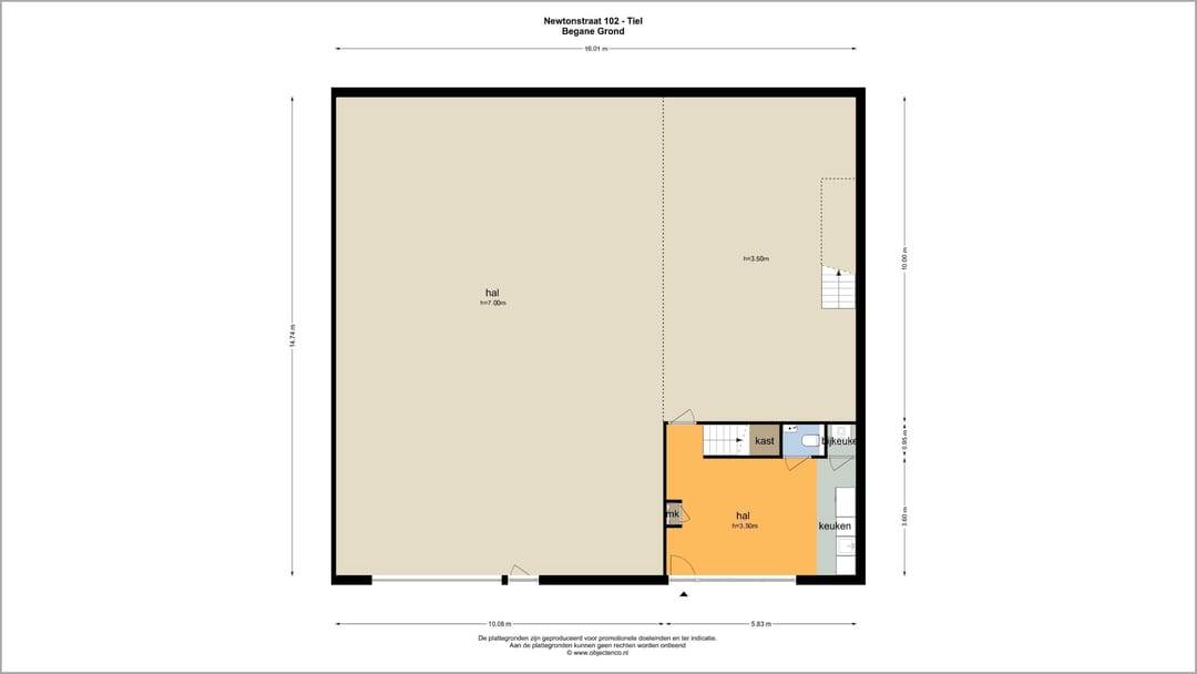 De door Van der Horst Bedrijfsmakelaardij en verkoper verstrekte informatie dient uitsluitend gezien te worden als een uitnodiging tot nader overleg. Hoewel de informatie met de grootst mogelijke zorg is samengesteld, wordt noch door de makelaar, noch door diens opdrachtgever ingestaan c.q. aansprakelijkheid aanvaard voor de juistheid dan wel volledigheid van de verstrekte, nog te verstrekken of vermelde gegevens. Aan afwijkingen in de tekst, maten en tekeningen kunnen dan ook geen rechten worden ontleend.