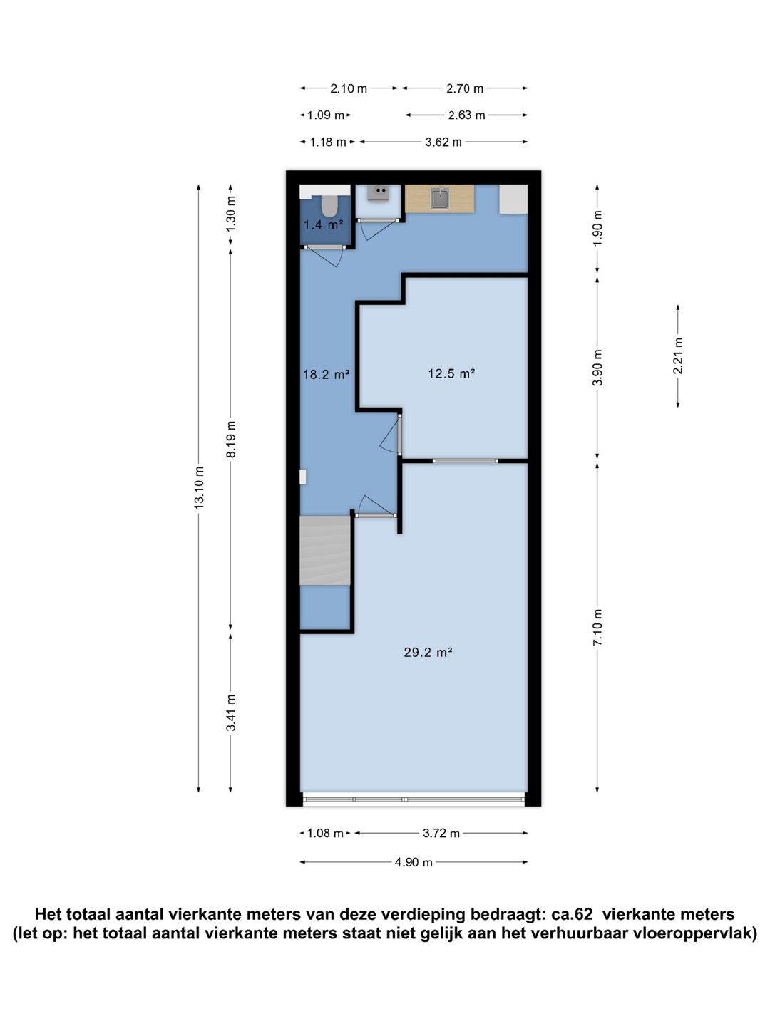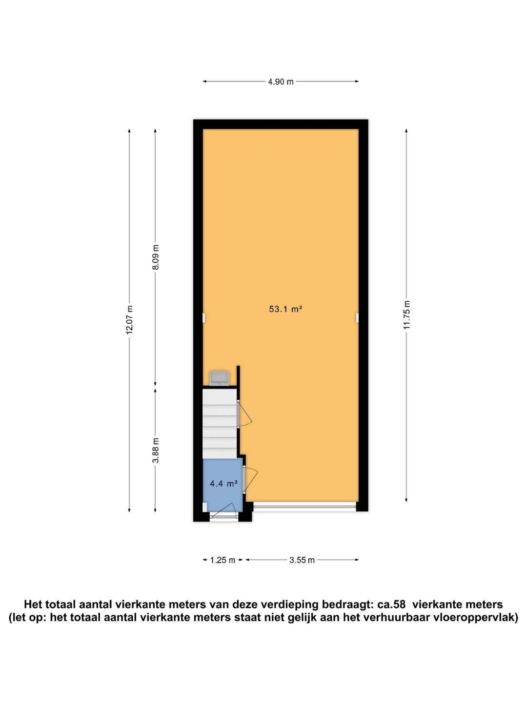 De oppervlakten zijn zo zorgvuldig mogelijk vastgesteld, doch mogen niet worden aangemerkt als zuivere verhuurbare oppervlakte volgens de Nederlandse Eenheids Norm NEN 2580.