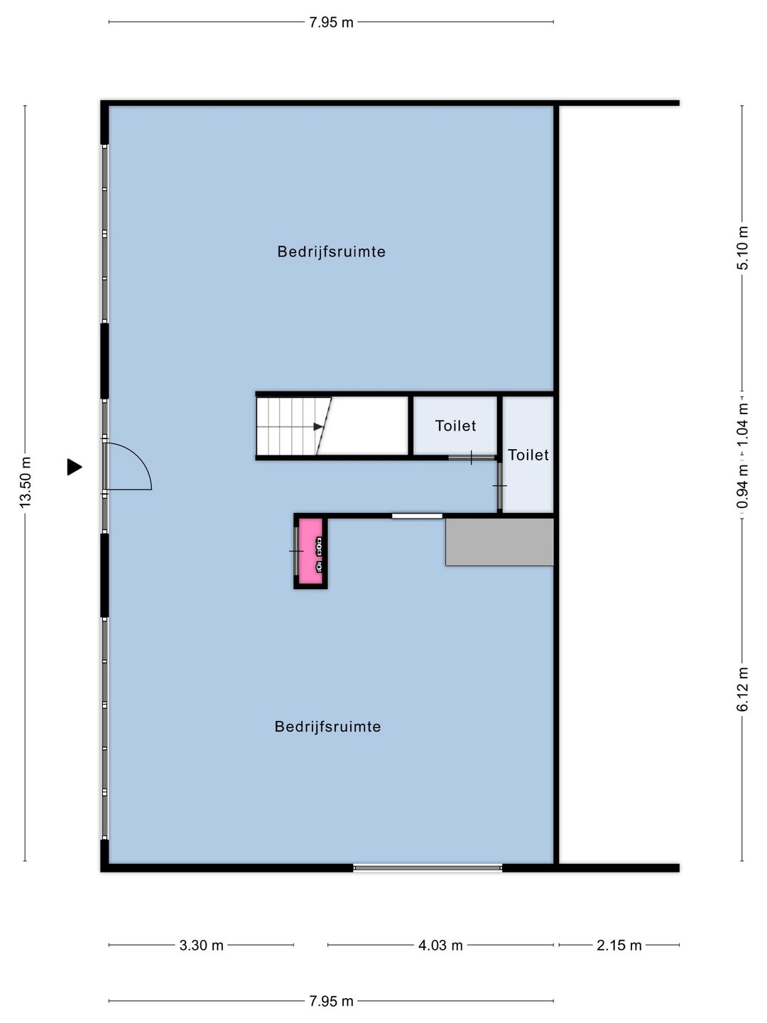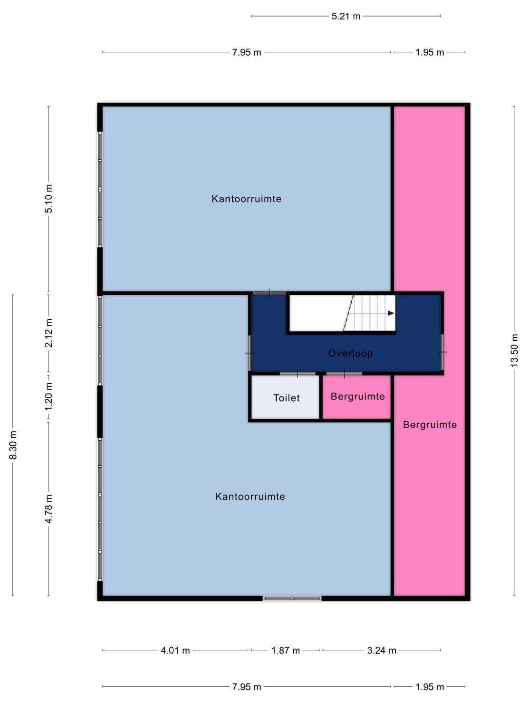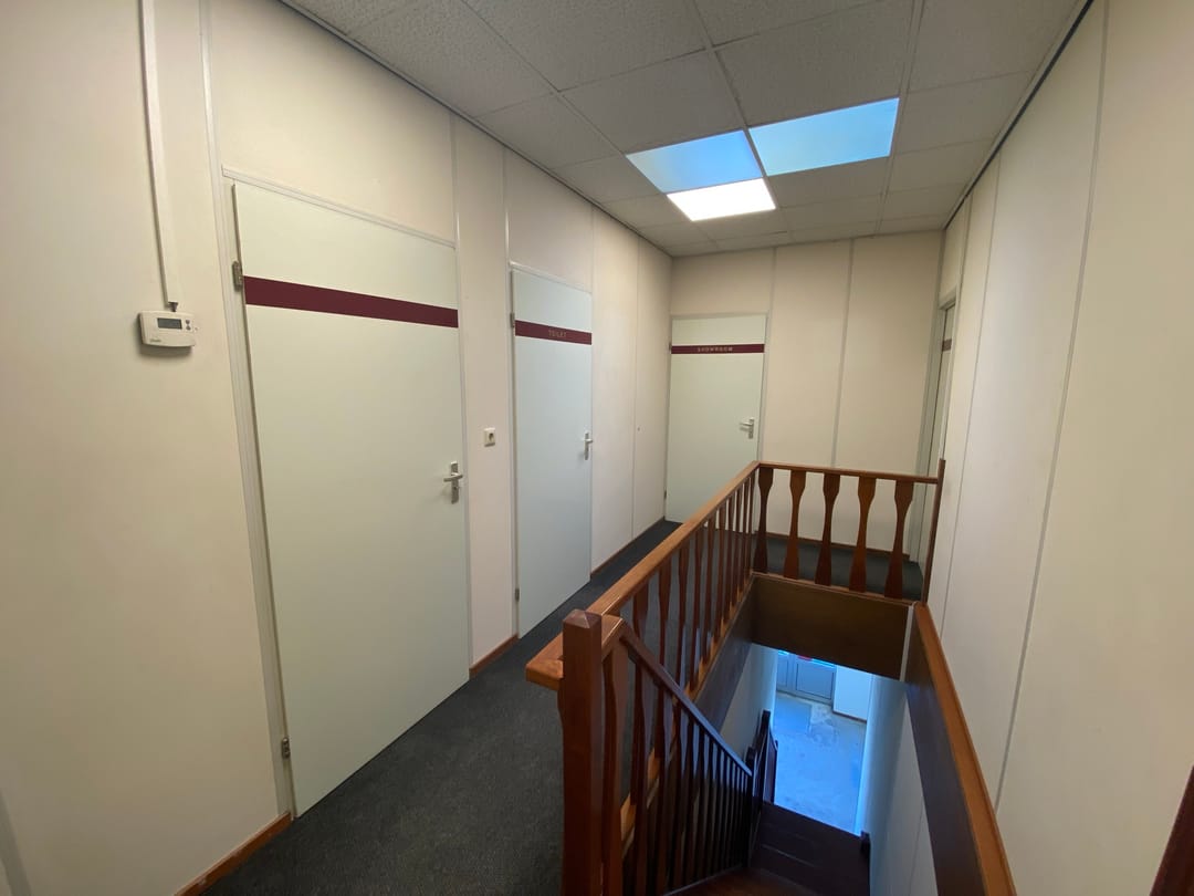 Entree, open bedrijfsruimte, pantry, toiletten, trapopgang, kantoorvertrekken, toiletten, archiefruimte.