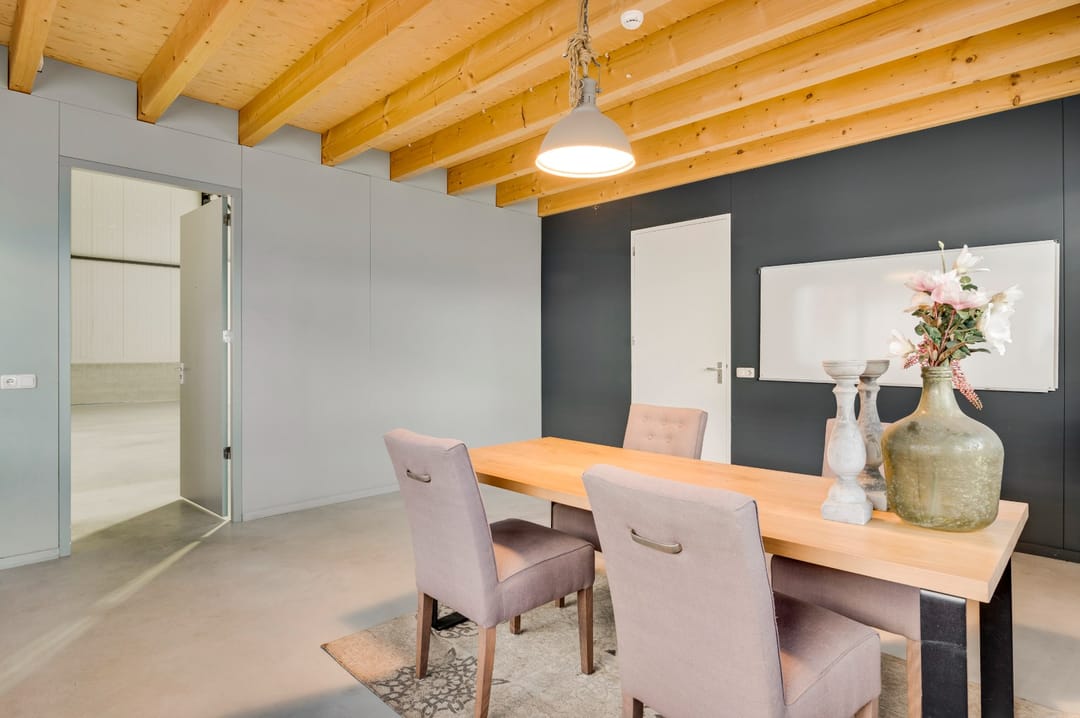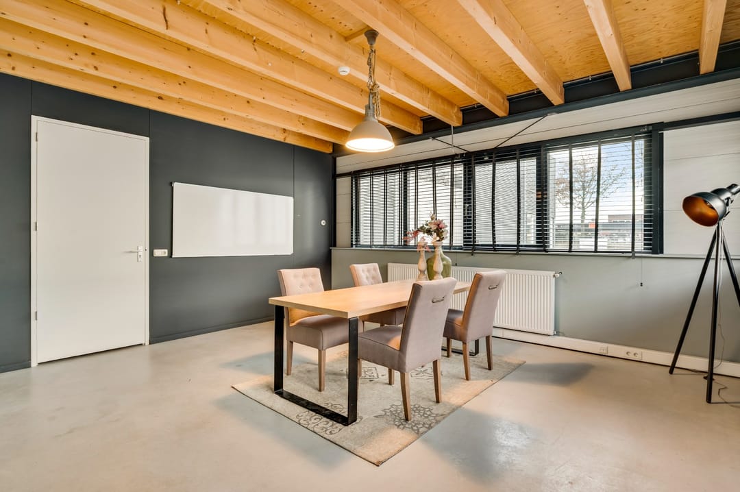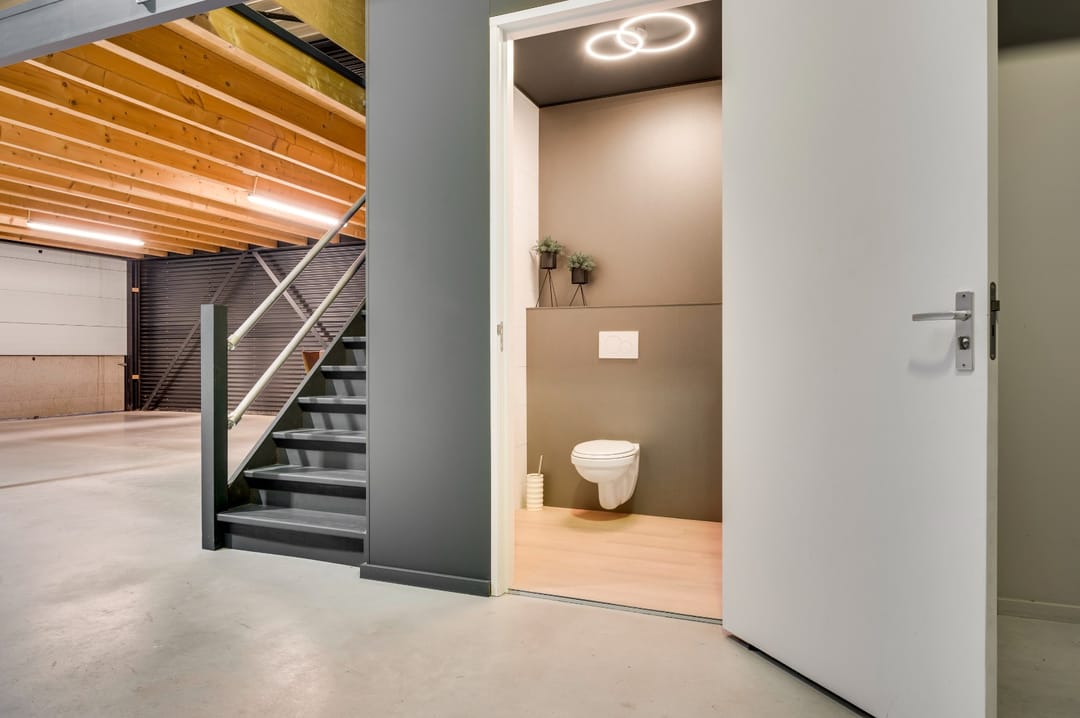 Moderne en uitstekend onderhouden bedrijfsruimte met betonvloer voorzien van vloerverwarming. Pantry met bar, koelkast en vaatwasser. Moderne, separate toiletruimte. De hal is gedeeltelijk voorzien van een ruime entresol welke dienst kan doen als magazijnruimte. Het pand is voorzien van 2 kantoorruimtes. 1 Op de begane grond en 1 op de verdieping. Beide ruimtes zijn voorzien van raampartijen zodat er veel daglicht toetreding is. De hal is voorzien van een brede lichtstraat.