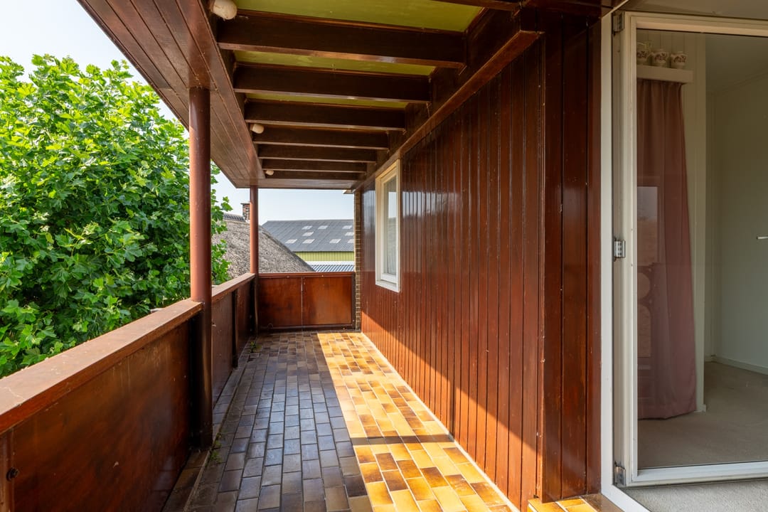 Op de verdieping vind je nog twee slaapkamers, waarvan één met vaste kast en de ander met toegang tot een vliering. Via de overloop bereik je bovendien een ruim inpandig balkon.