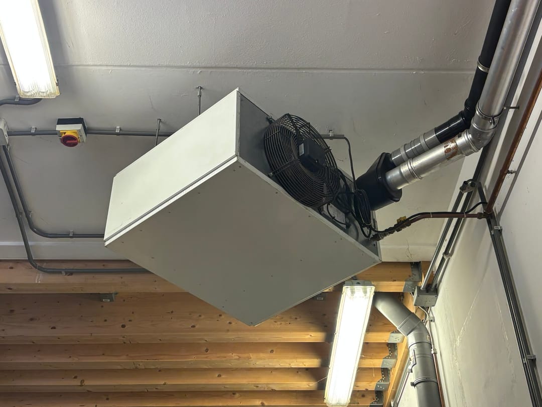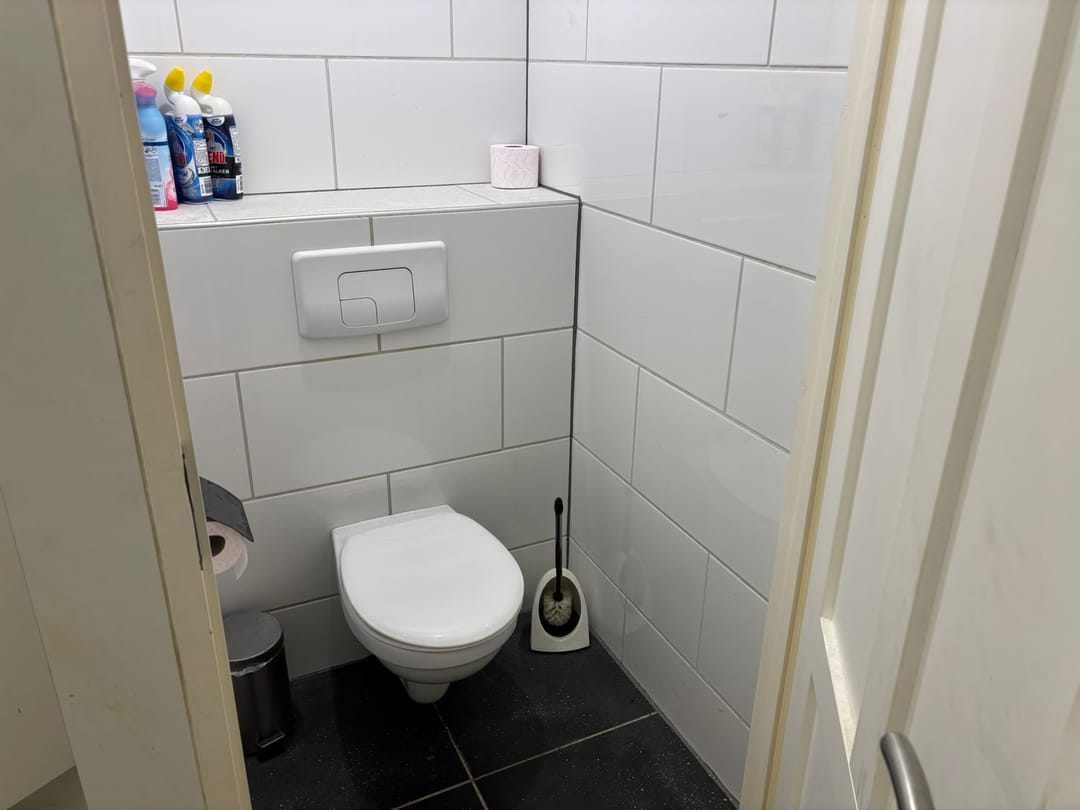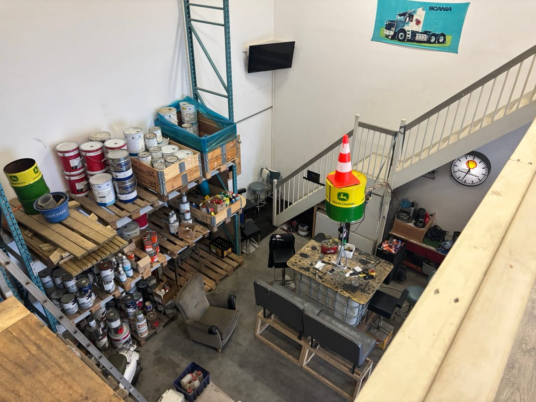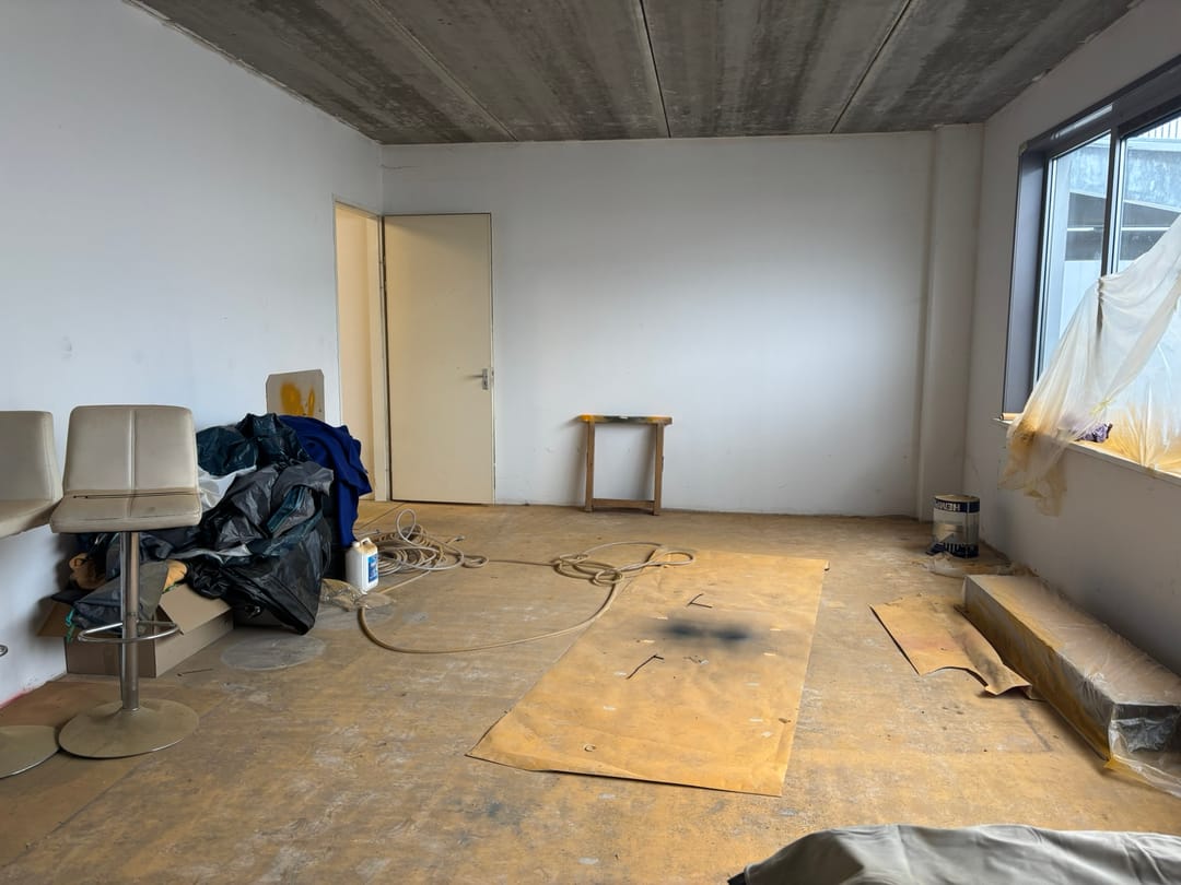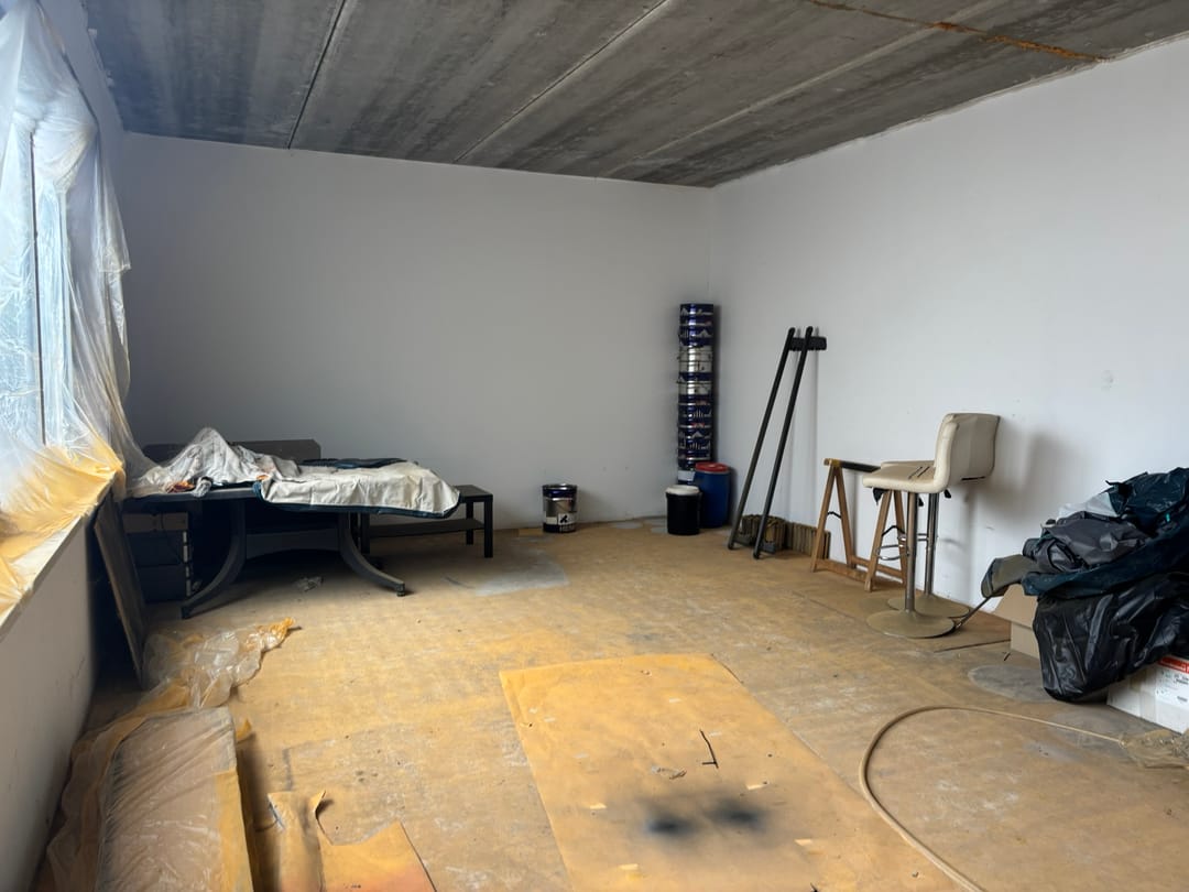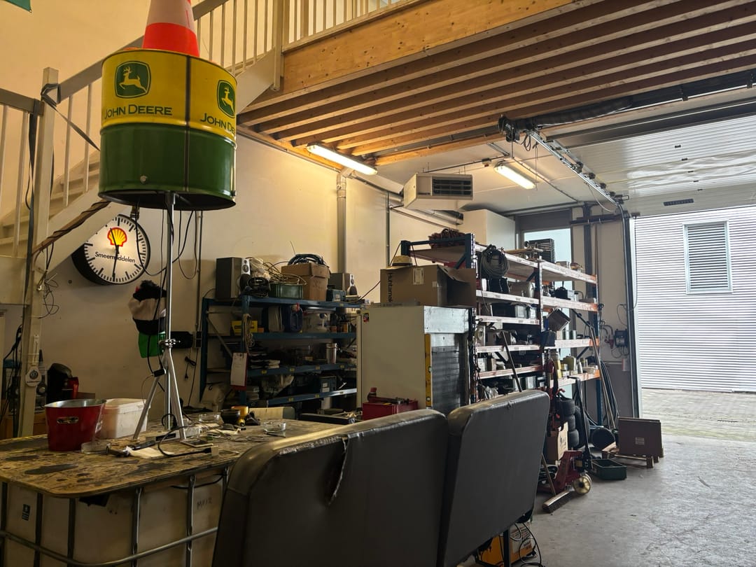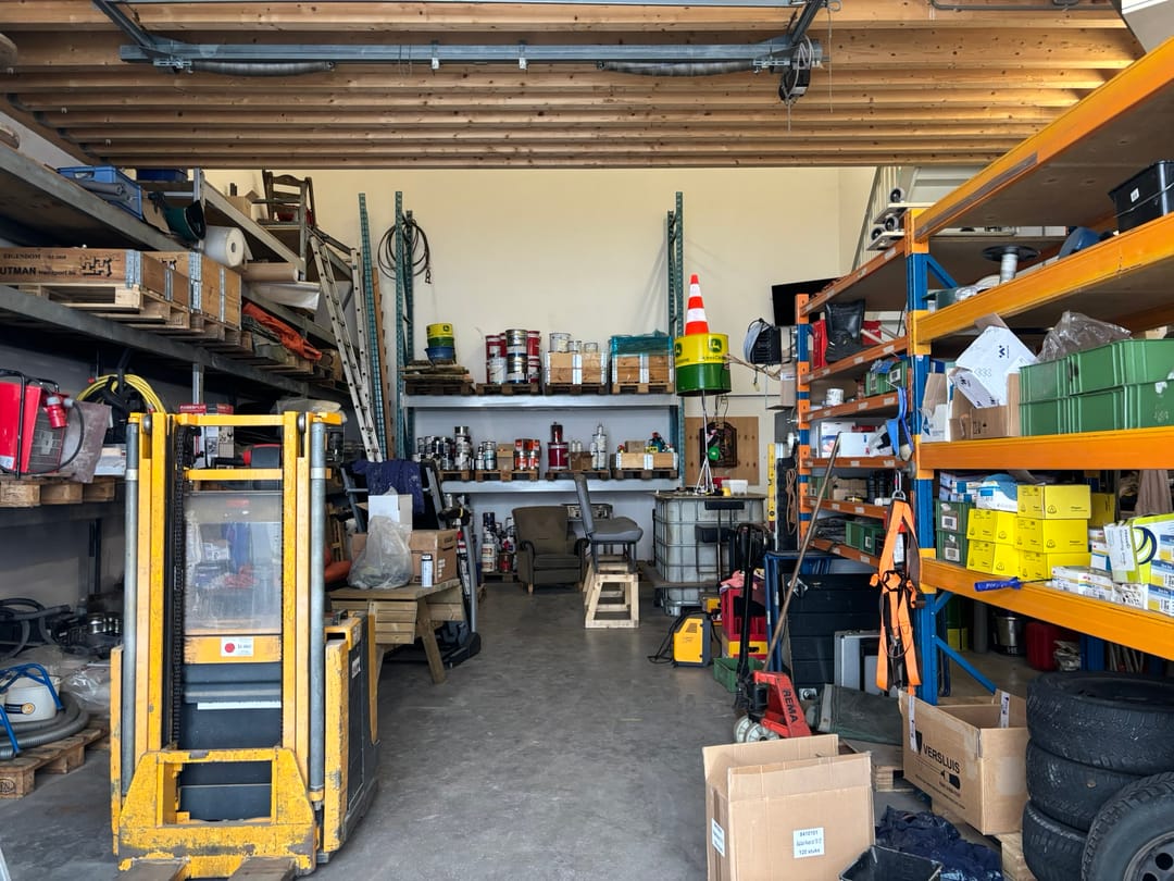 - Overheaddeuren, krachtstroom, betonvloer, heater, toilet en te openen ramen