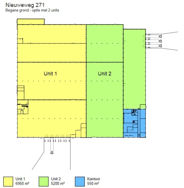 - Lichtstraten, loading docks, overheaddeuren, krachtstroom, betonvloer, toilet en pantry