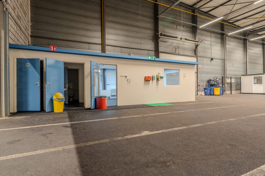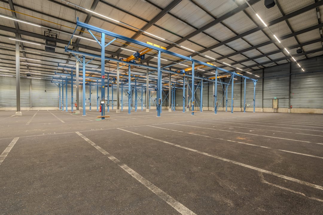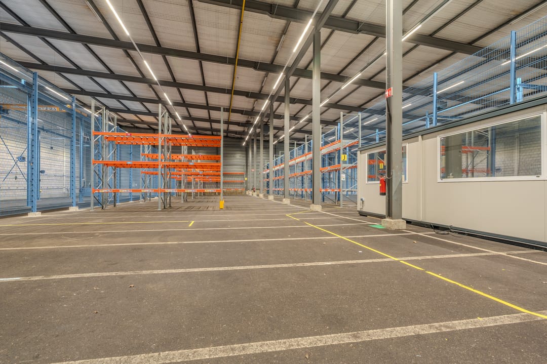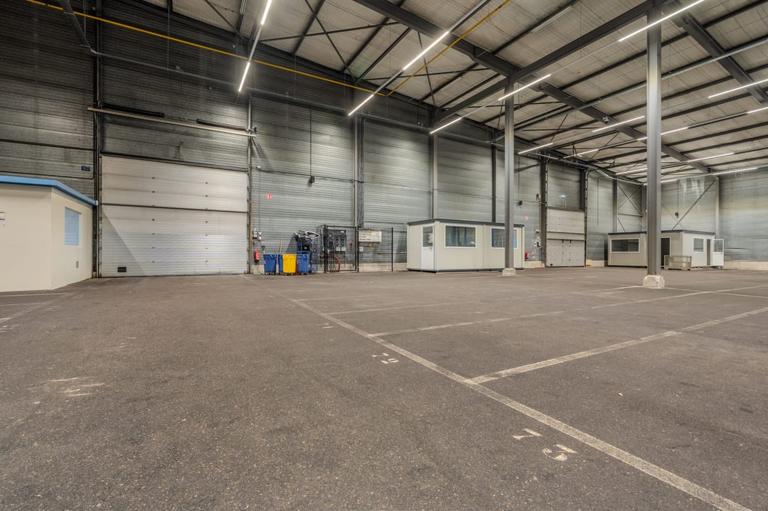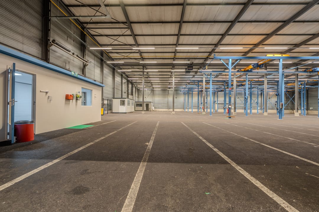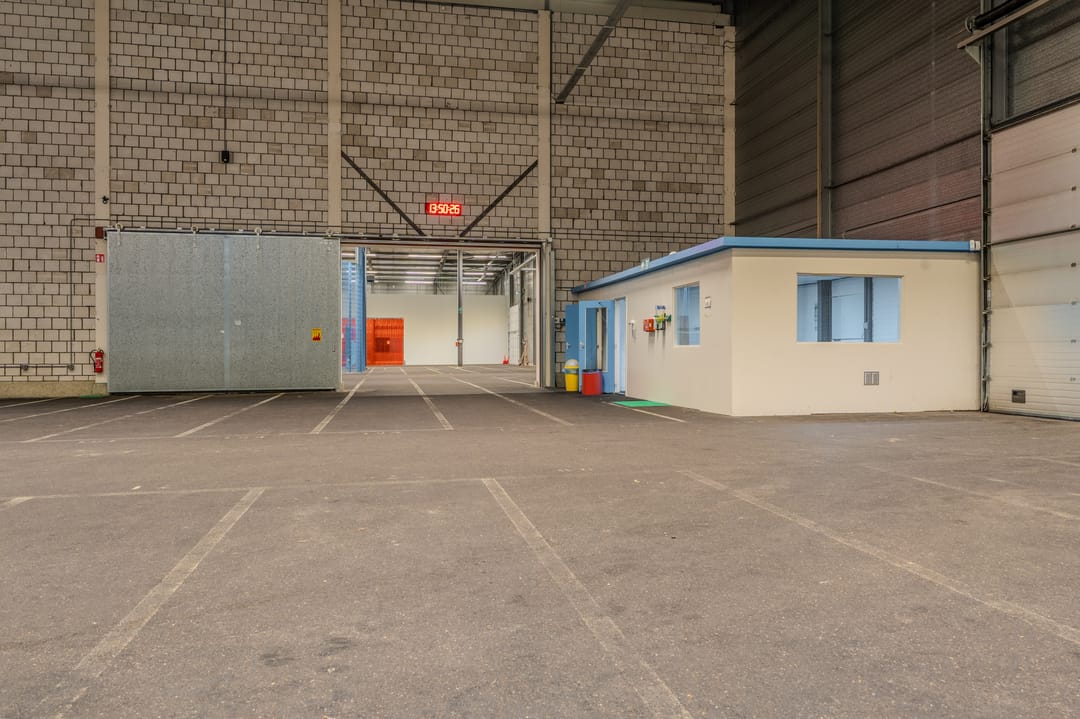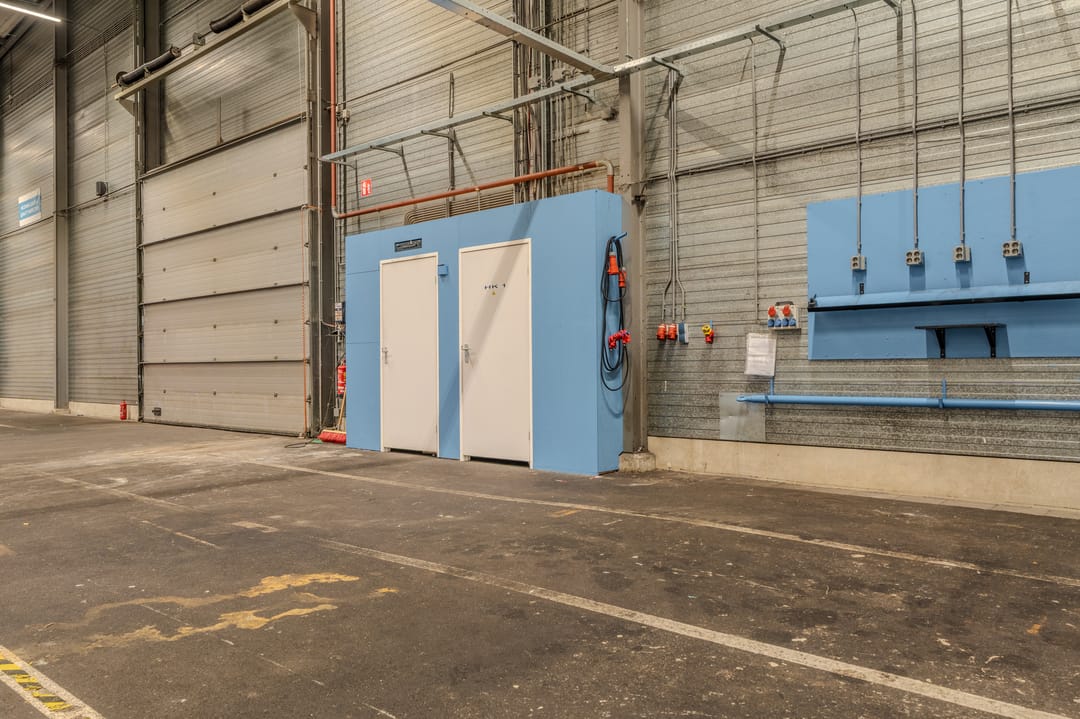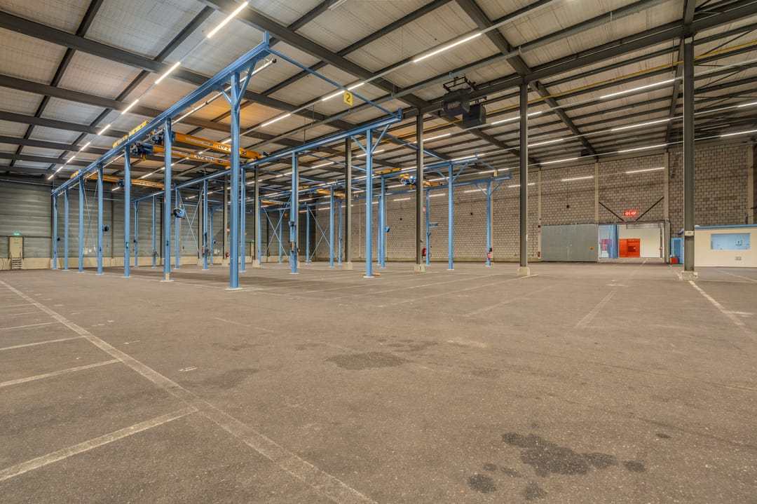- Overheaddeuren, krachtstroom, betonvloer, toilet, pantry, airconditioning, inbouwarmaturen en te openen ramen