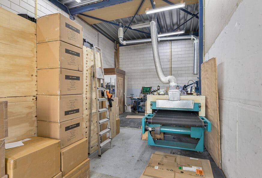 - Overheaddeuren, krachtstroom, betonvloer, toilet, pantry, airconditioning, inbouwarmaturen en te openen ramen