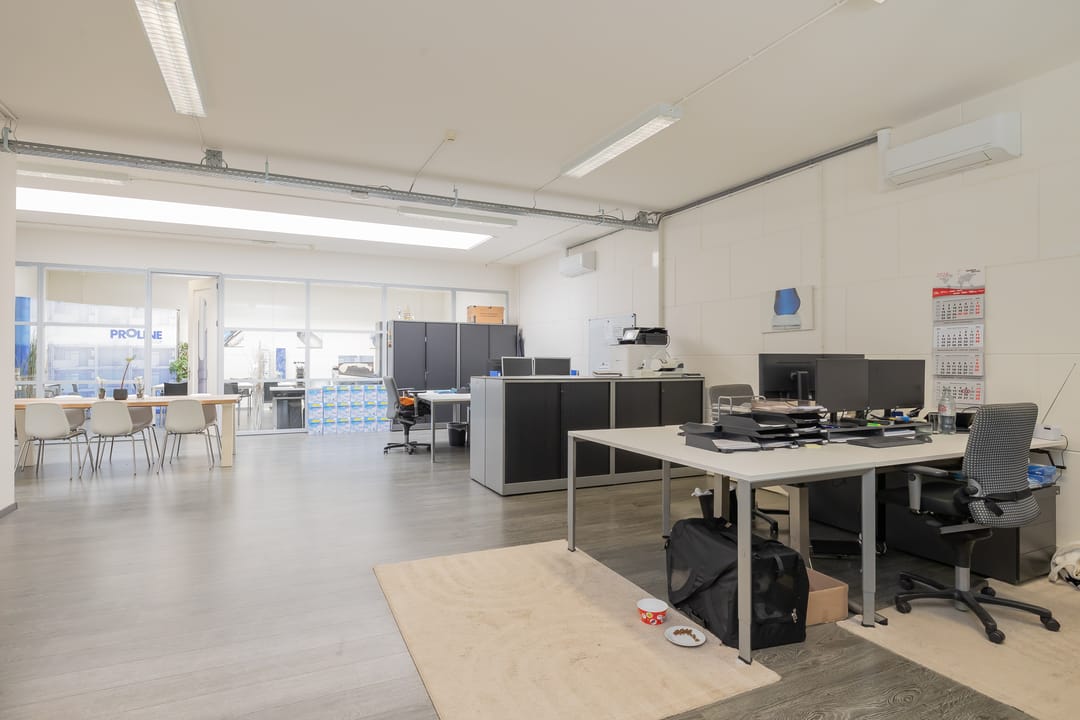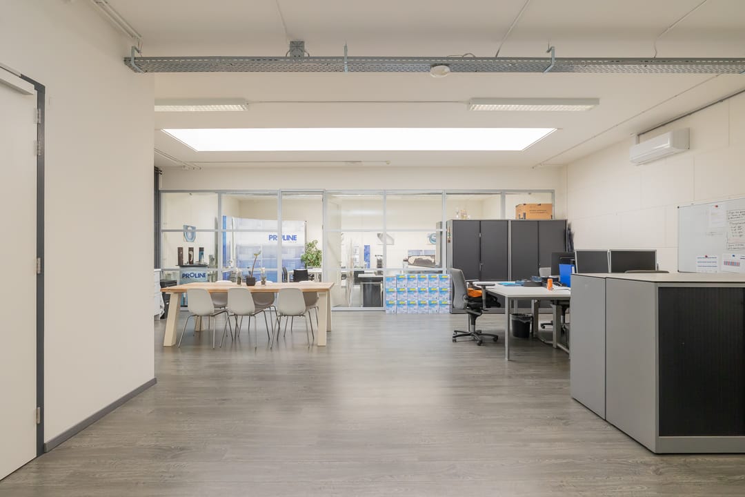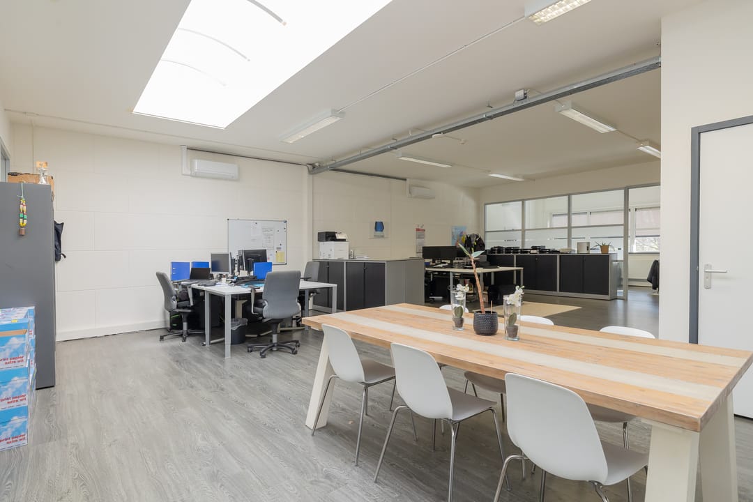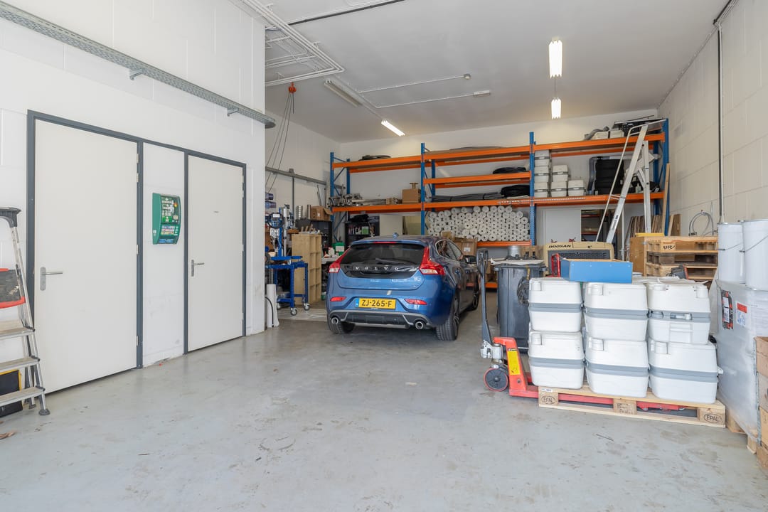 - Lichtstraten, overheaddeuren, betonvloer, heater, toilet en pantry