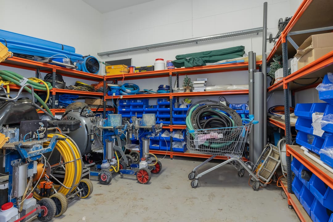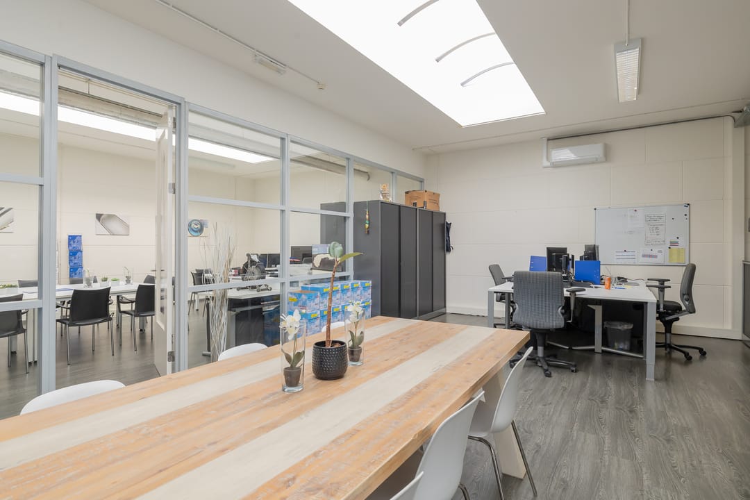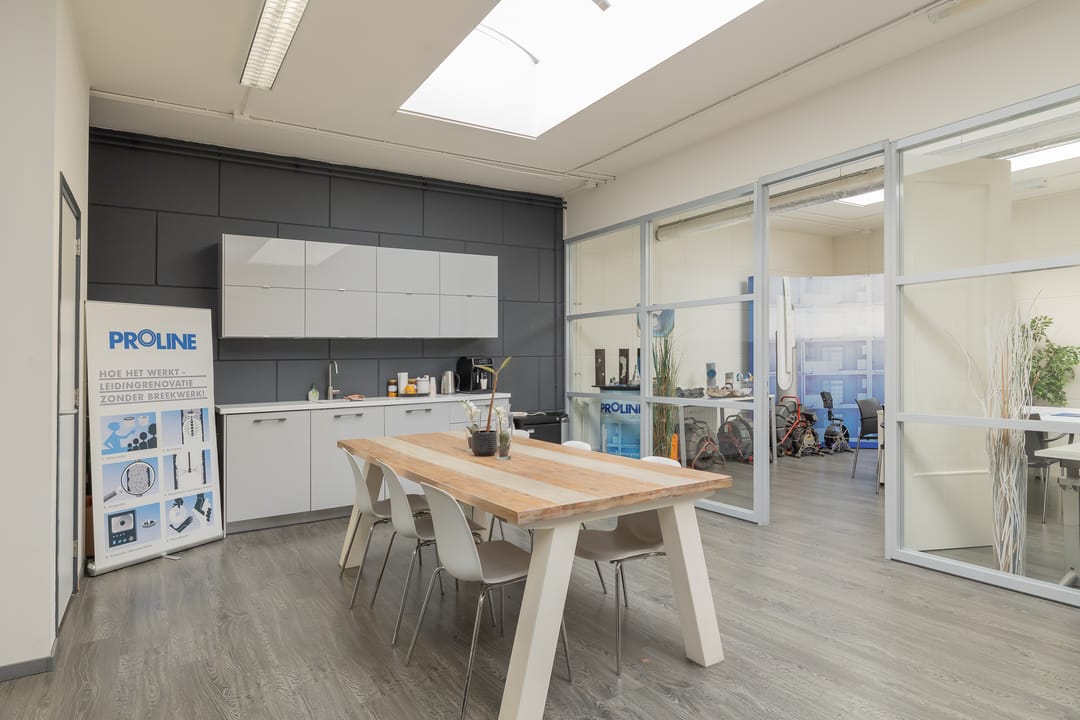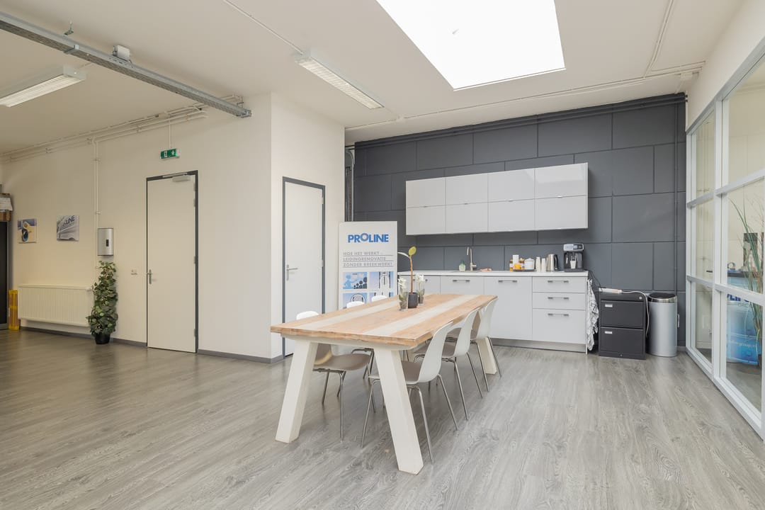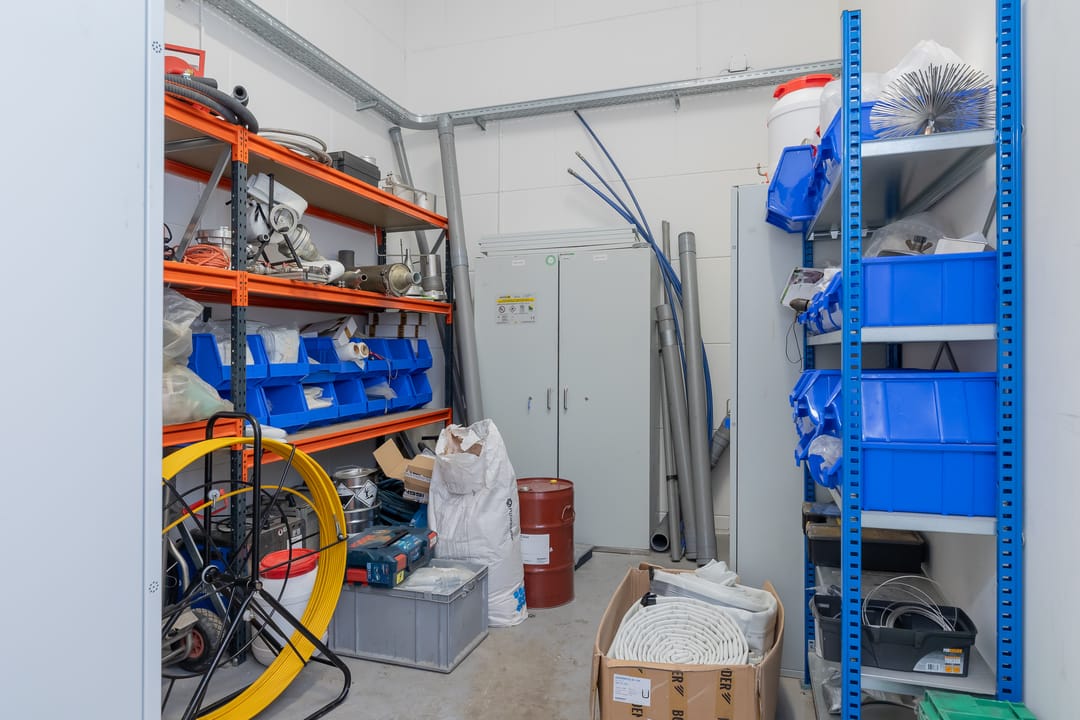 - Lichtstraten, overheaddeuren, betonvloer, heater, toilet en pantry