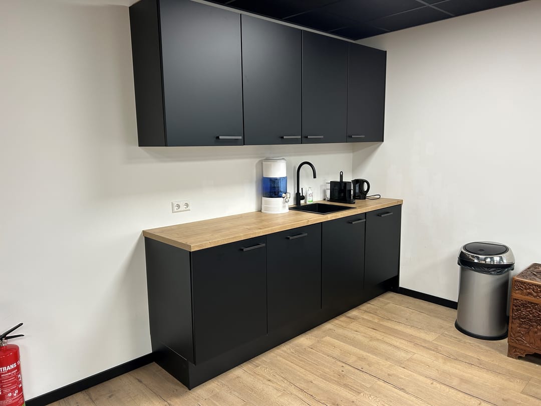 1e verdieping: Kantoorruimte en een aparte showroomruimte met modern keukenblok met vaatwasser en boiler. Oppervlakte ca. 195 m² BVO.