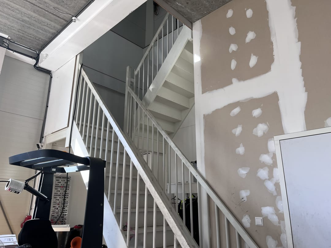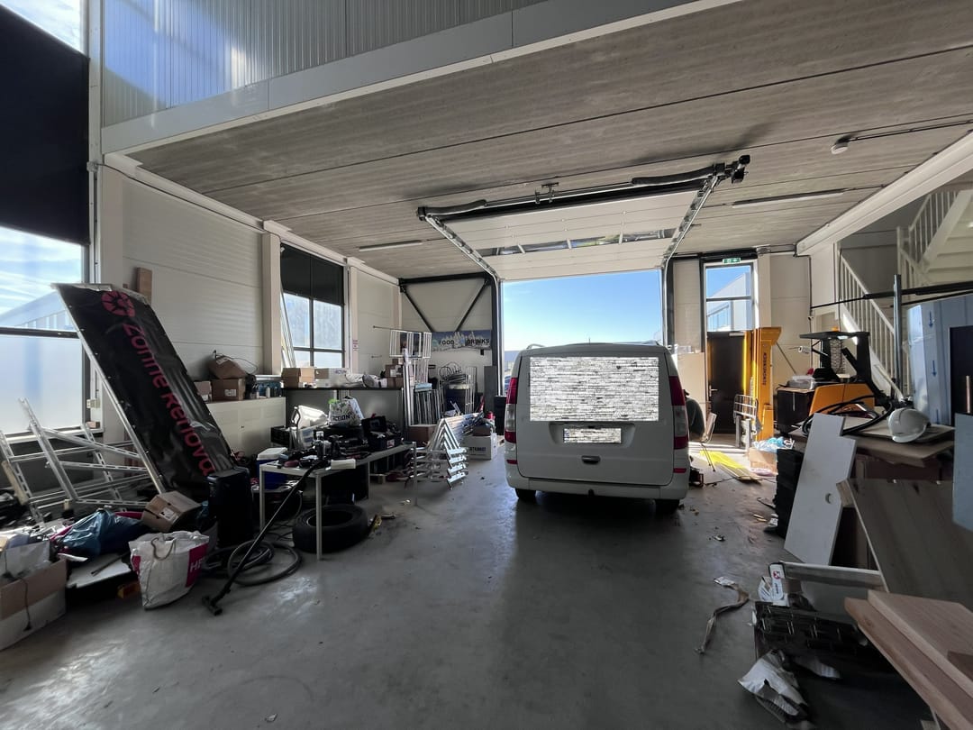 - Overheaddeuren, betonvloer, toilet en pantry