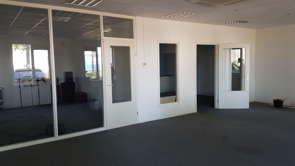 Voorzien van alarm, airco, verwarming, toilet groepen, keuken, kabelgoten, scheidingswanden, systeemplafond.