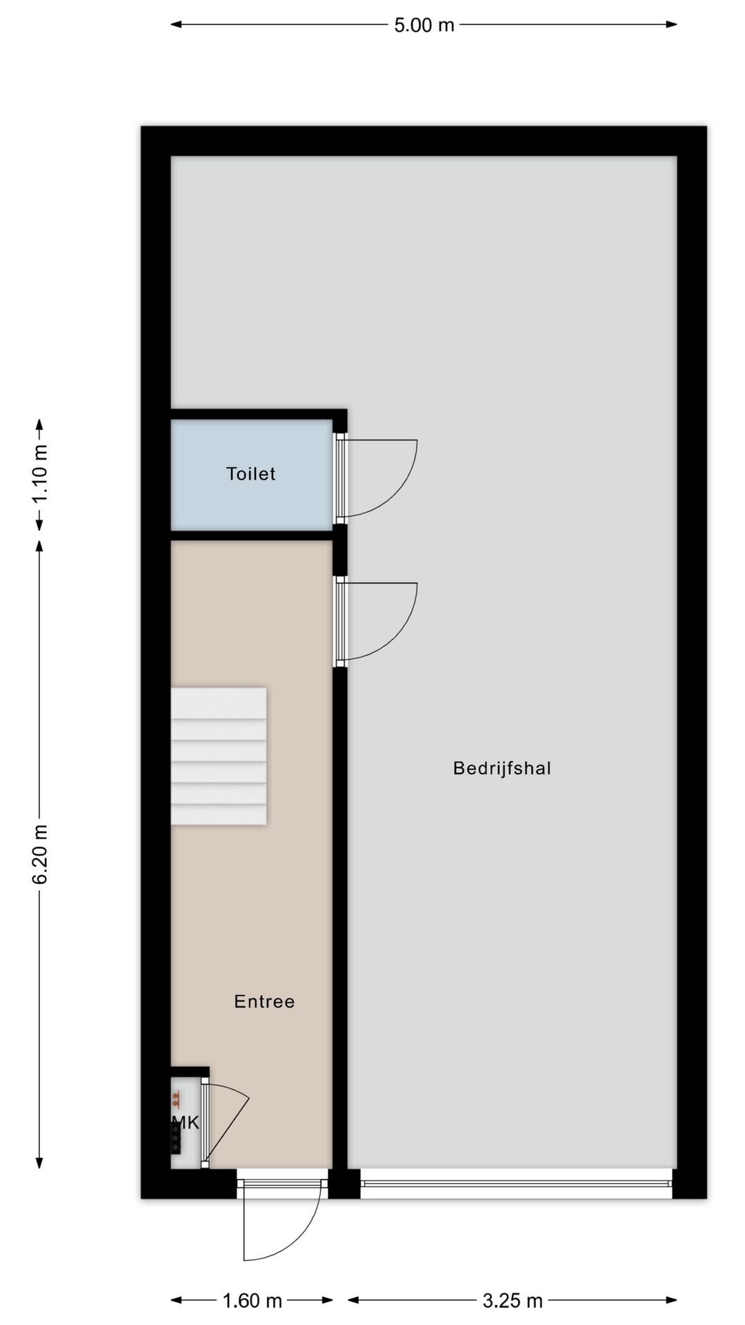 Bedrijfsruimte, entree en toilet