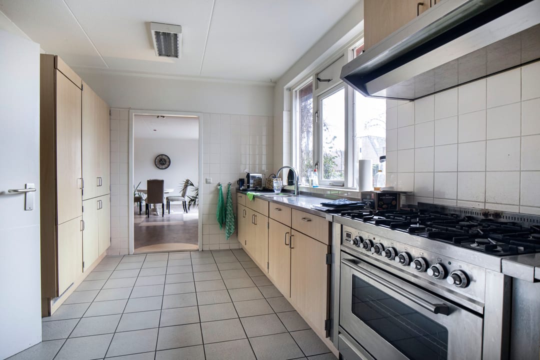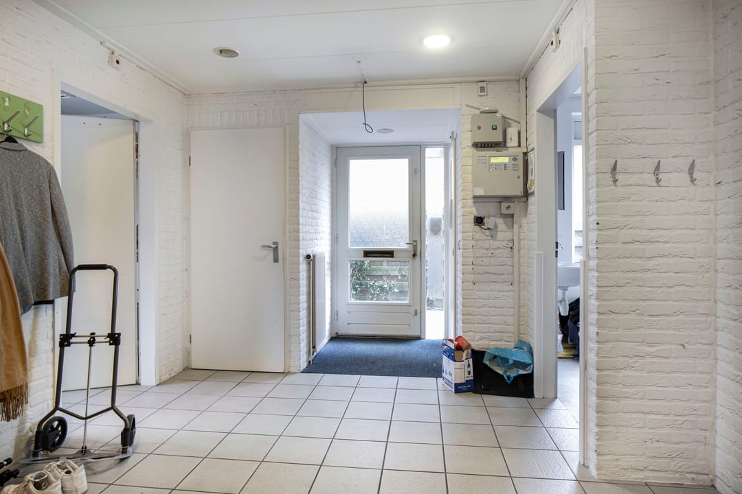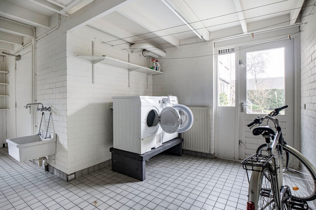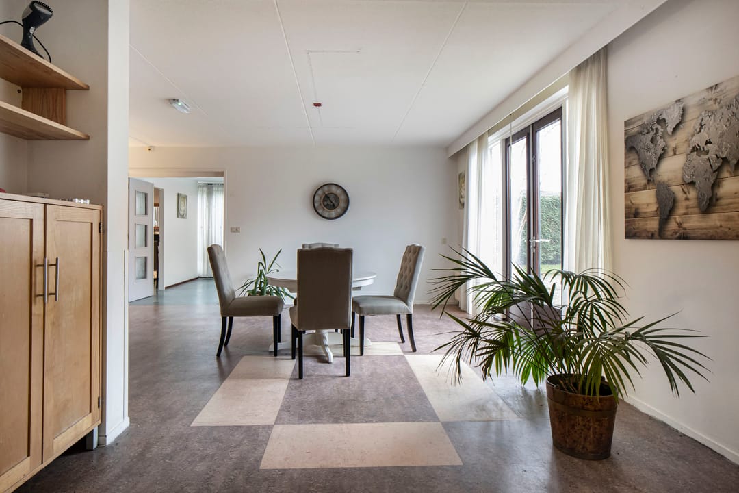 Via de voordeur kom je de woning binnen in een ruime hal waar ruimte is voor het opbergen van jassen en schoenen. Vanuit de hal is er tot verschillende delen van het huis toegang zoals o.a. de woonkamer, de keuken en de trapopgang naar de eerste verdieping. De woon- en eetkamer is een fijne lichte ruimte door de grote raampartijen aan de voor- en achtergevel van de woning. Aansluitend aan de woonkamer zijn nog 2 kamers die makkelijk ingericht kunnen worden voor hobbymatig gebruik of als werkkamer. Vanuit de eetkamer loop je eenvoudig naar de keuken, de keuken heeft een rechte opstelling en is voorzien van diverse inbouwapparatuur. Via de keuken is de ruime bijkeuken bereikbaar, de bijkeuken biedt een goede mogelijkheid voor opslag. In de bijkeuken is tevens de aansluiting van de wasmachine/droger te vinden.