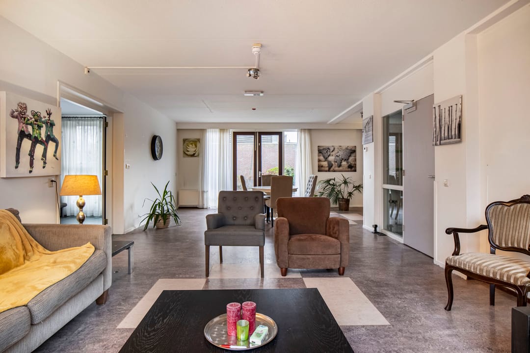 +Ruime woonkamer met opslaande deuren naar de achtertuin;