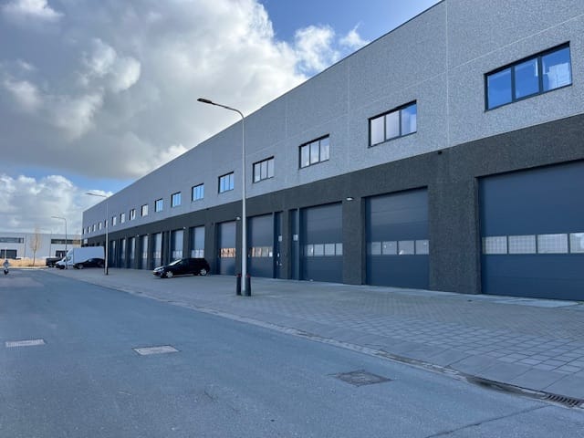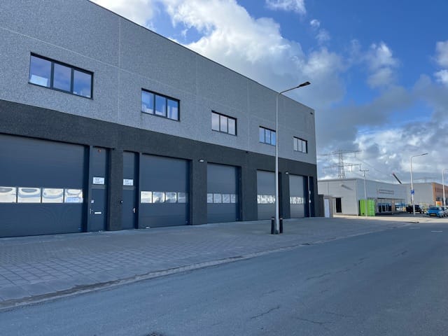 Twee elektrische overheaddeuren met lichtstrook voor gemakkelijke toegang en daglichttoetreding.