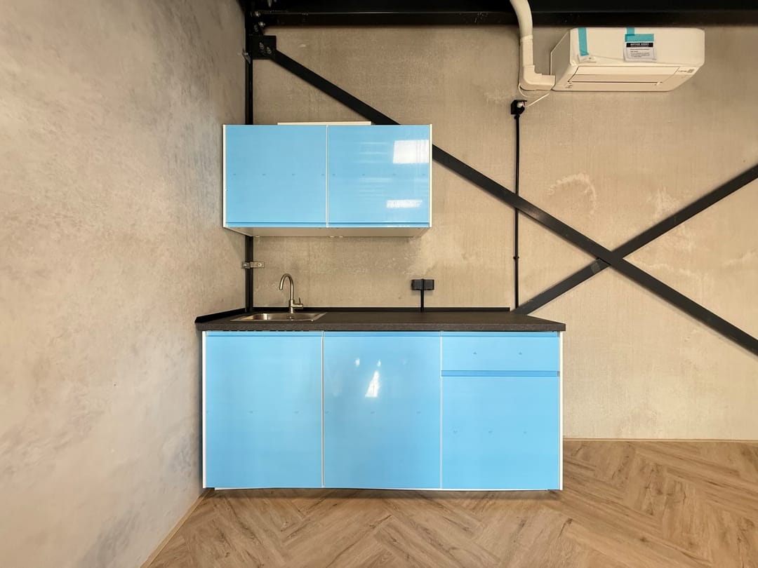 - Air conditioning, mechanical ventilation, overhead doors, concrete floor, toilet, pantry, built-in fittings and windows can be opened