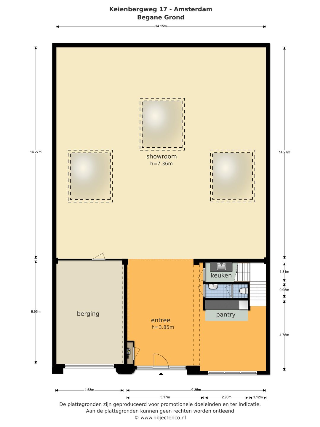 - vrije hoogte ca. 7,4 m (gedeeltelijk)